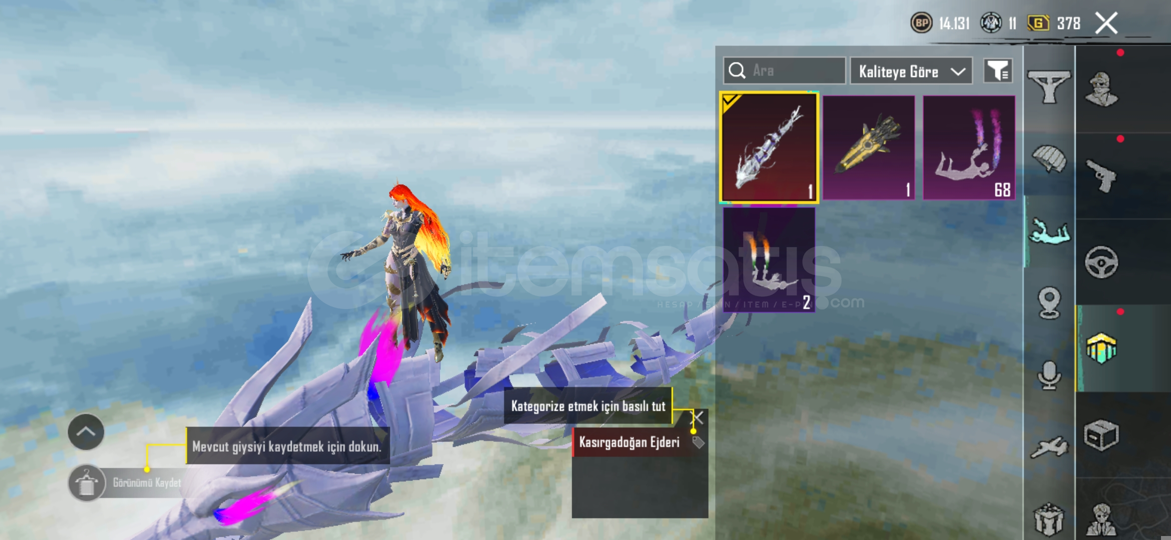 Satış yaptığınızda site tarafından size SMS, mail ve site içi bildirim gelmektedir. Satın alım yapmadan size satın aldığını göstermeye çalışan kullanıcılar olabilir, lütfen itibar etmeyiniz.