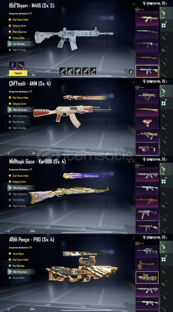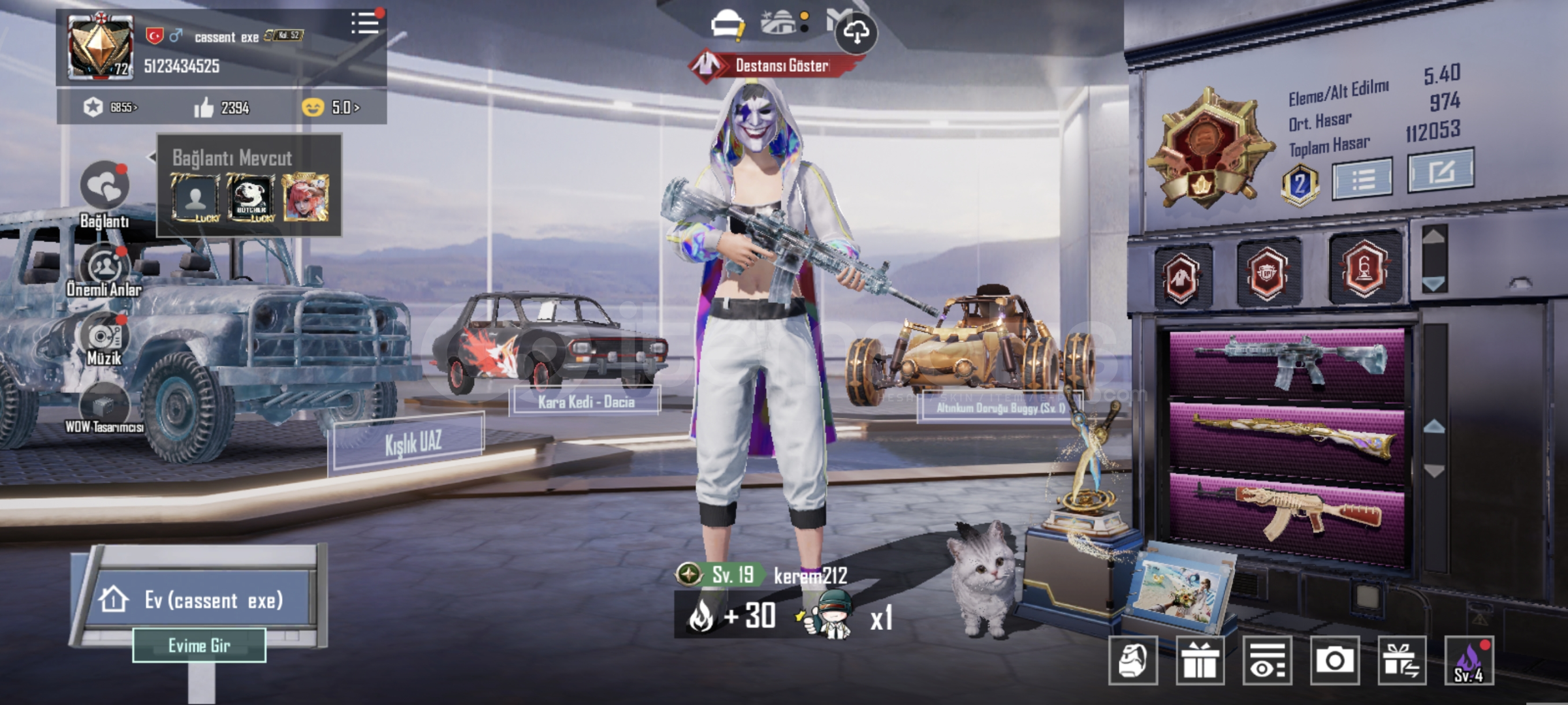 54 destansı 1 nihai1 X suit Anukhra 2 18 silah Buz diyarı 5 sv Çöl fosili AKM 4 sv Mehtaplı Gece kar98 4 sv Altın pençe p90 4 sv 8 bitlik patlama Ump 4 sv Dikenli şafak M16 3 sv ölüm duyurusu Yamalı tavşan mk47 3 sv ölüm duyurusu Romantik anlar uzi 4 sv ölüm duyurusu Parlak güneş Qbz 3 sv Toplam 8 ölüm duyurusu Nadir eşyalar...