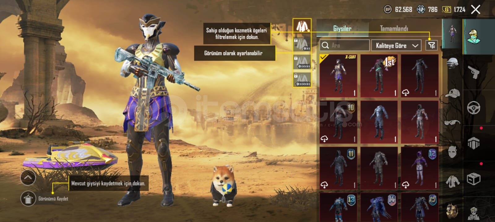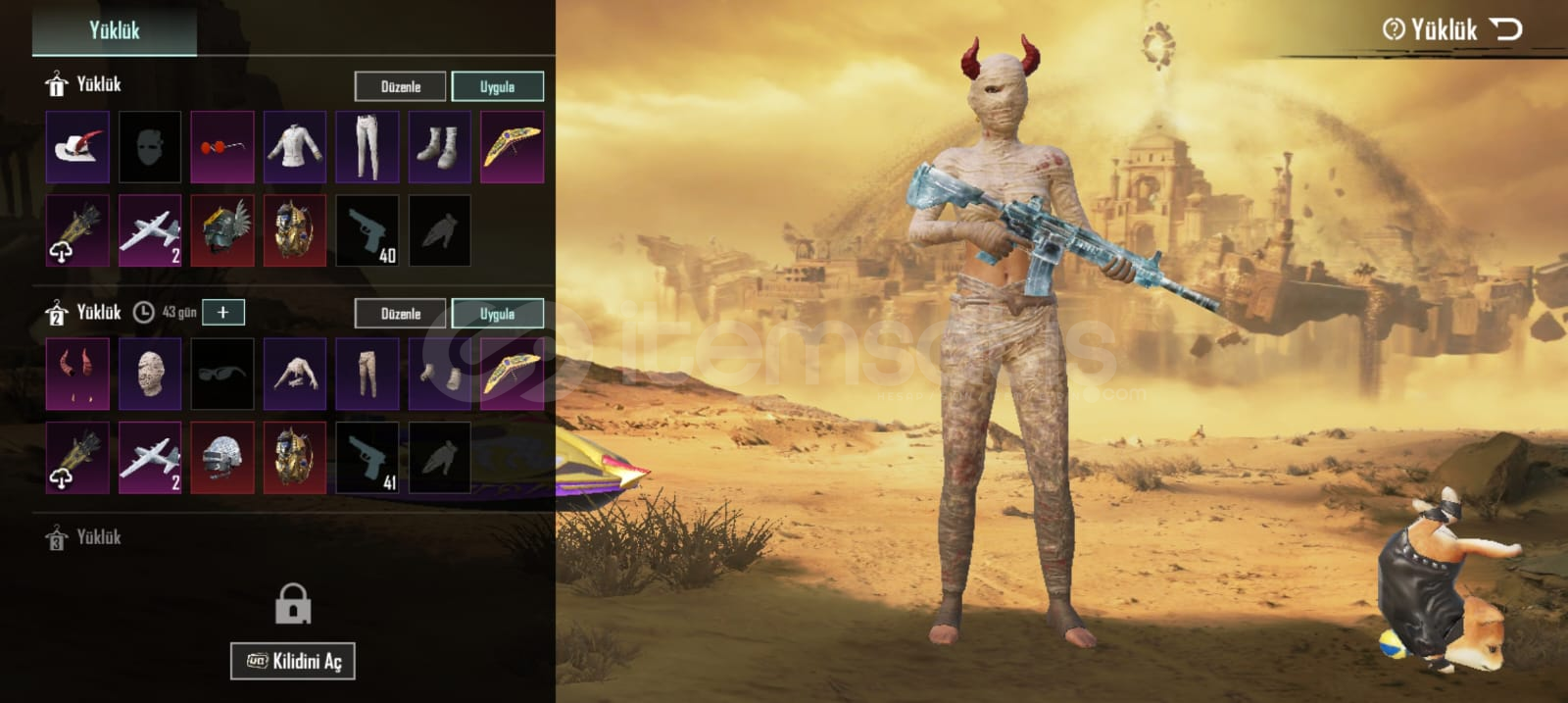 Hesap 80 seviyedir.Hesap 73 Destansıdır.Hesapta 19 tane yükseltirilebilir silah vardır.Buz M4 5 seviyedir.10 tane silah ölüm mesajlıdır.Firavun X-Suit vardır 1 seviyedir.Firavun çantası vardır.C8S24 Fatihidir.Destansı buggy deseni vardır.Yoldaş kuş ve köpek vardır.Güzel dolu hesaptır videosu vardır.Bağları Alt mail ve nodur.İkiside değişime açıktır....