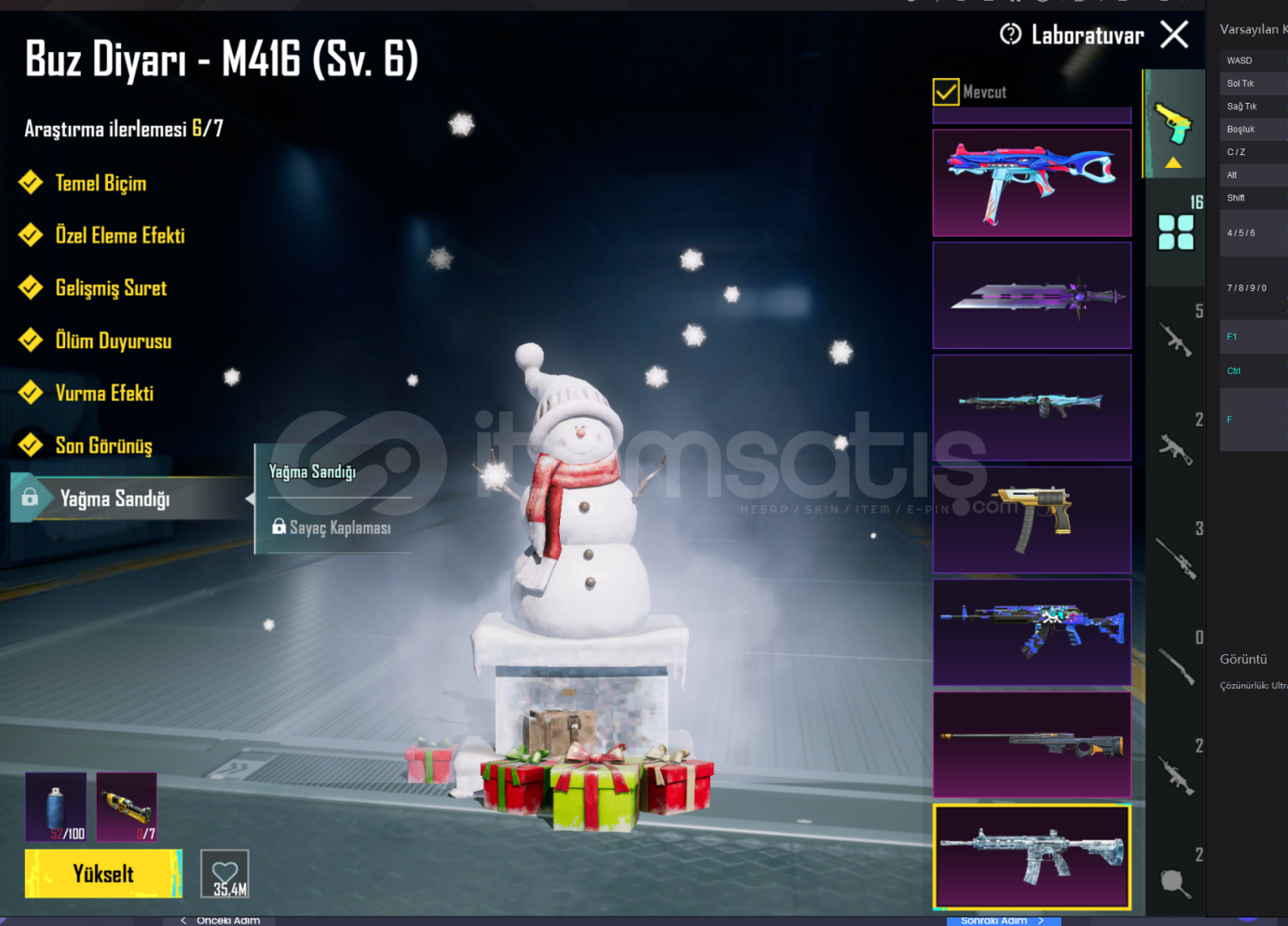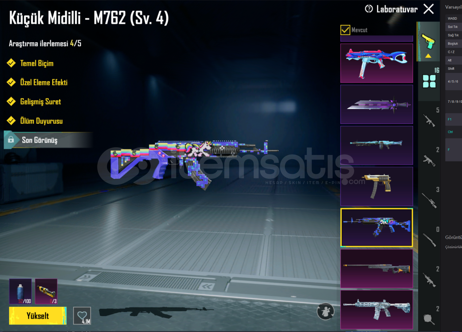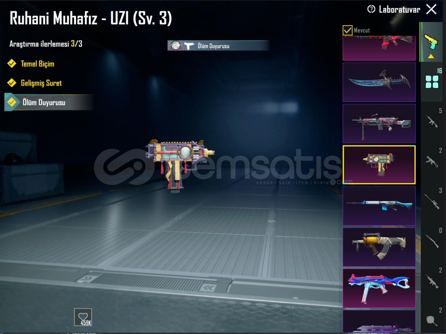 58 Destansı 55 Koleksiyon Seviyesi Mevcut 16 Yükseltilebilir Mevcut Buz M4 6 Seviye Midili M7 4 SeviyeDikenli Şafak M16 3 Seviye (MAXX)Ruhani Muhafız Uzi 3 Seviye (MAXX)Denizlerin Evrimi Ump 3 Seviye (MAXX)Ejder Katili Yadigarı Pala 2 Seviye 5 Kill Chat Mevcut------------------------------------------Saha Komutanı Awm 1 Seviye Altın Şifre Akrep 1 SeviyeYükselen Ejderha Mg3 1 Seviye Katil Balkabağı Groza 1 Seviye...