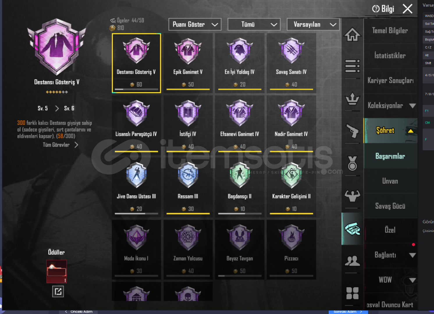 58 Destansı 55 Koleksiyon Seviyesi Mevcut