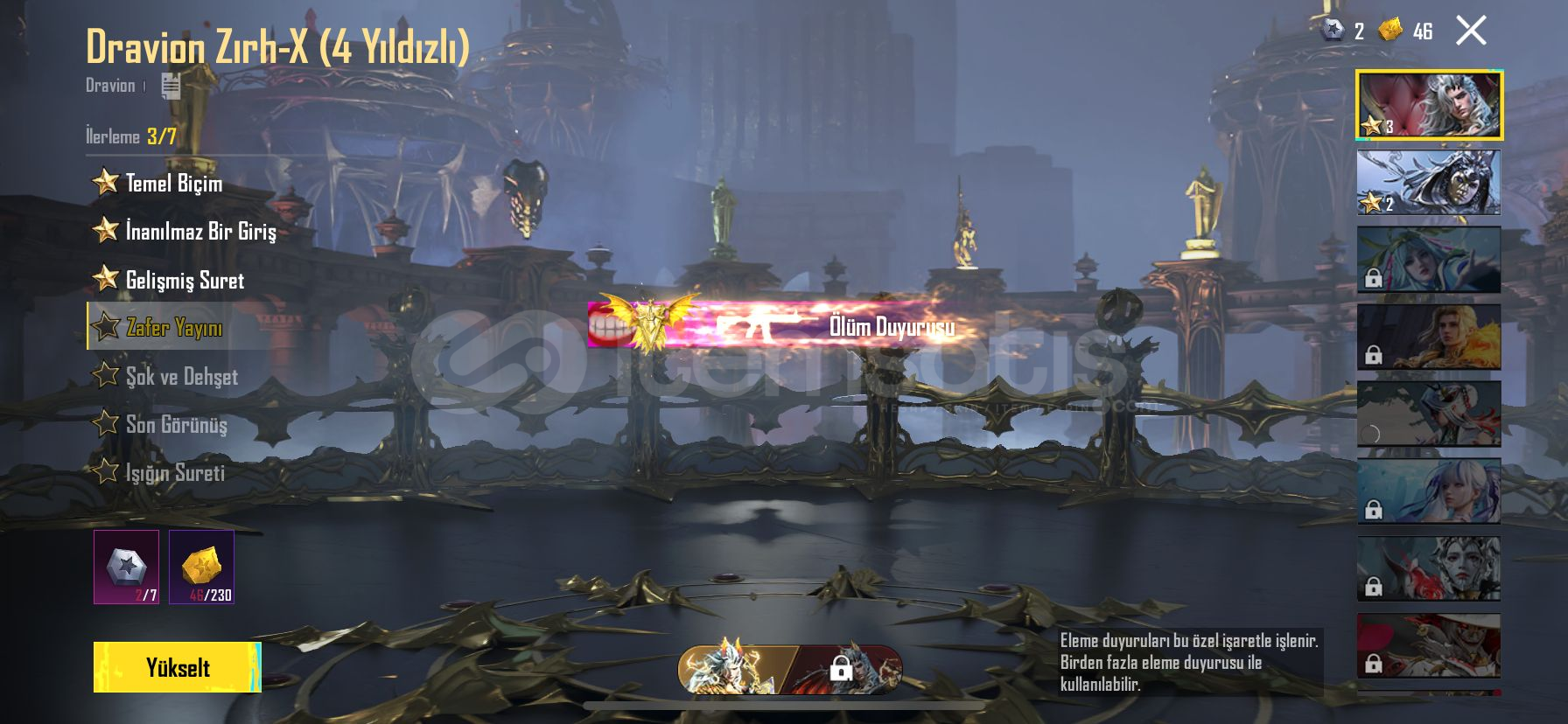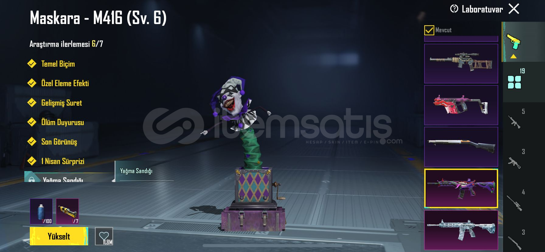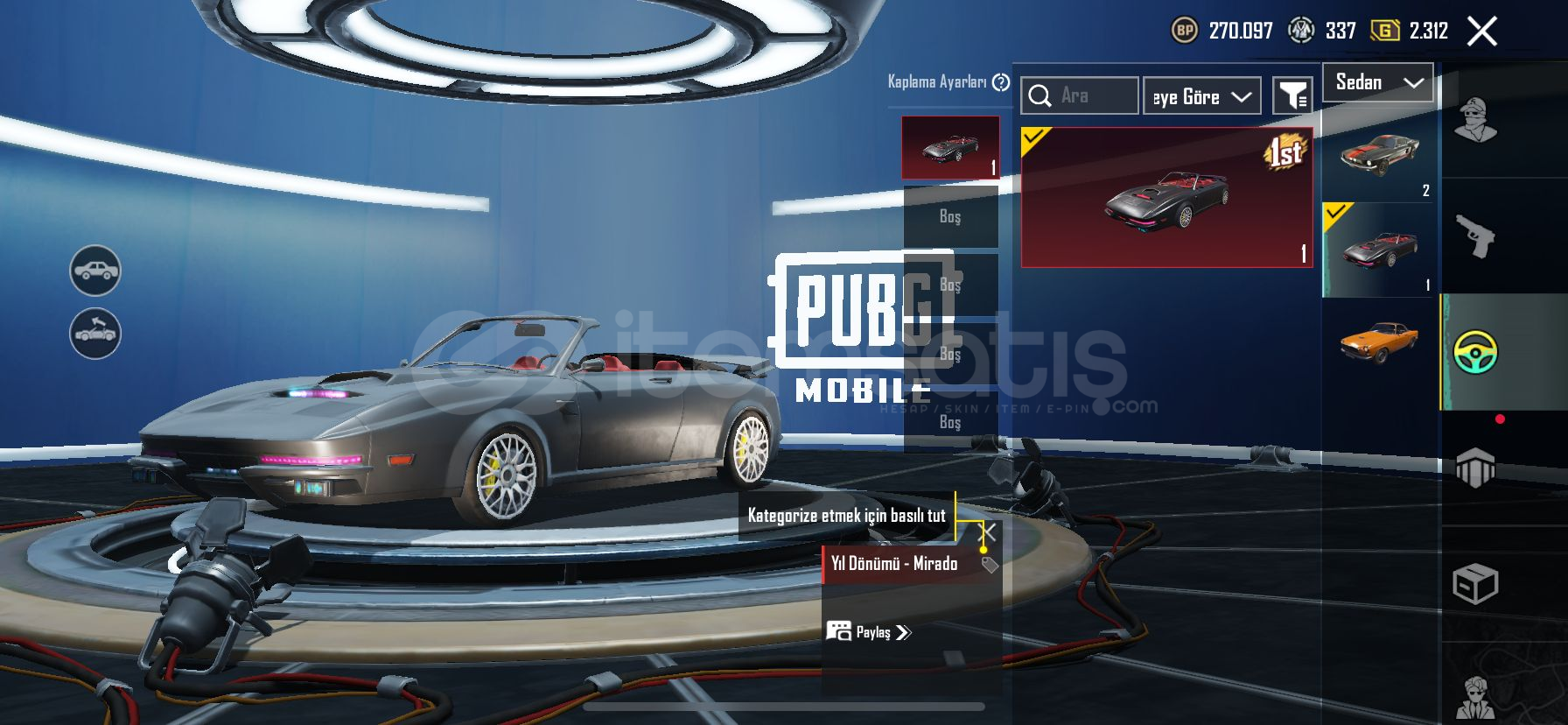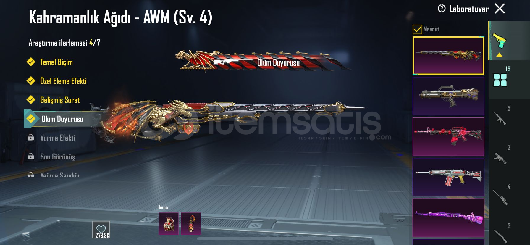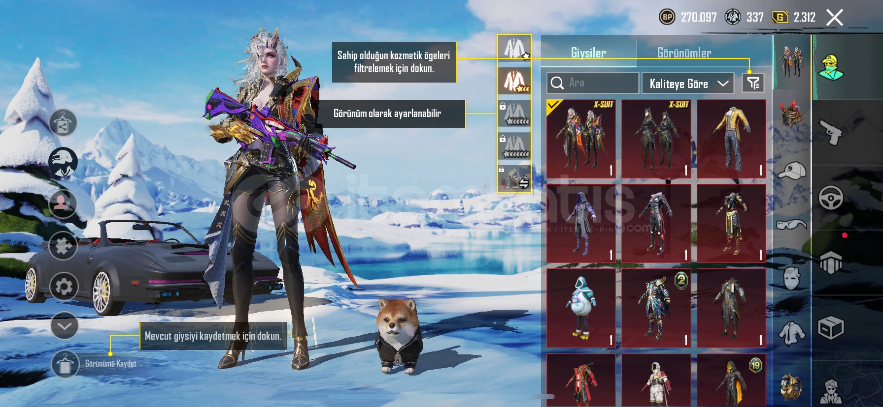 🔥 Spor AraçlarShell VGT500Kırmızı Yıldönümü Mirado🔫 Yükseltilebilir SilahlarMaskara M416 – Alt SeviyeBuzdiyar M416 – Alt SeviyeYüksek Ses SCAR-L – 5 SeviyeKahraman Ağıtı AWM – 4 SeviyeDikenli Şafak M16A4 – MAX SeviyeŞirin Kedi Kar98 – MAX SeviyeRomantik Anlar UZI – 4 SeviyeNebula Avris Kar98 – 3 SeviyeYükselen Ejder HMG – 3 Seviye🛡 X-Suit...