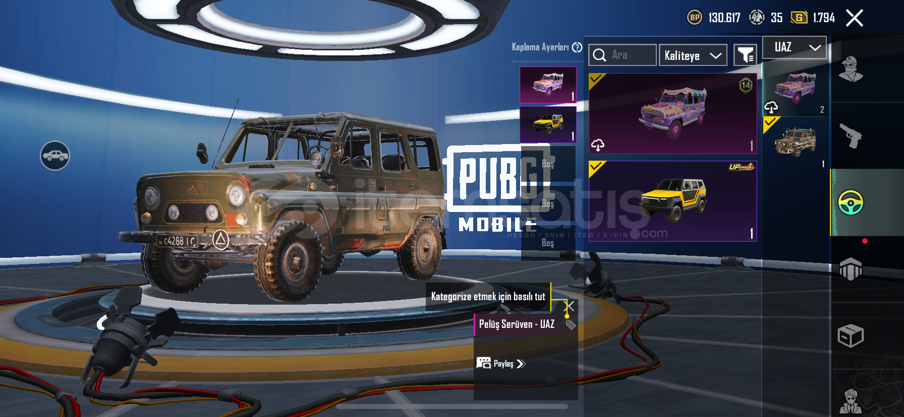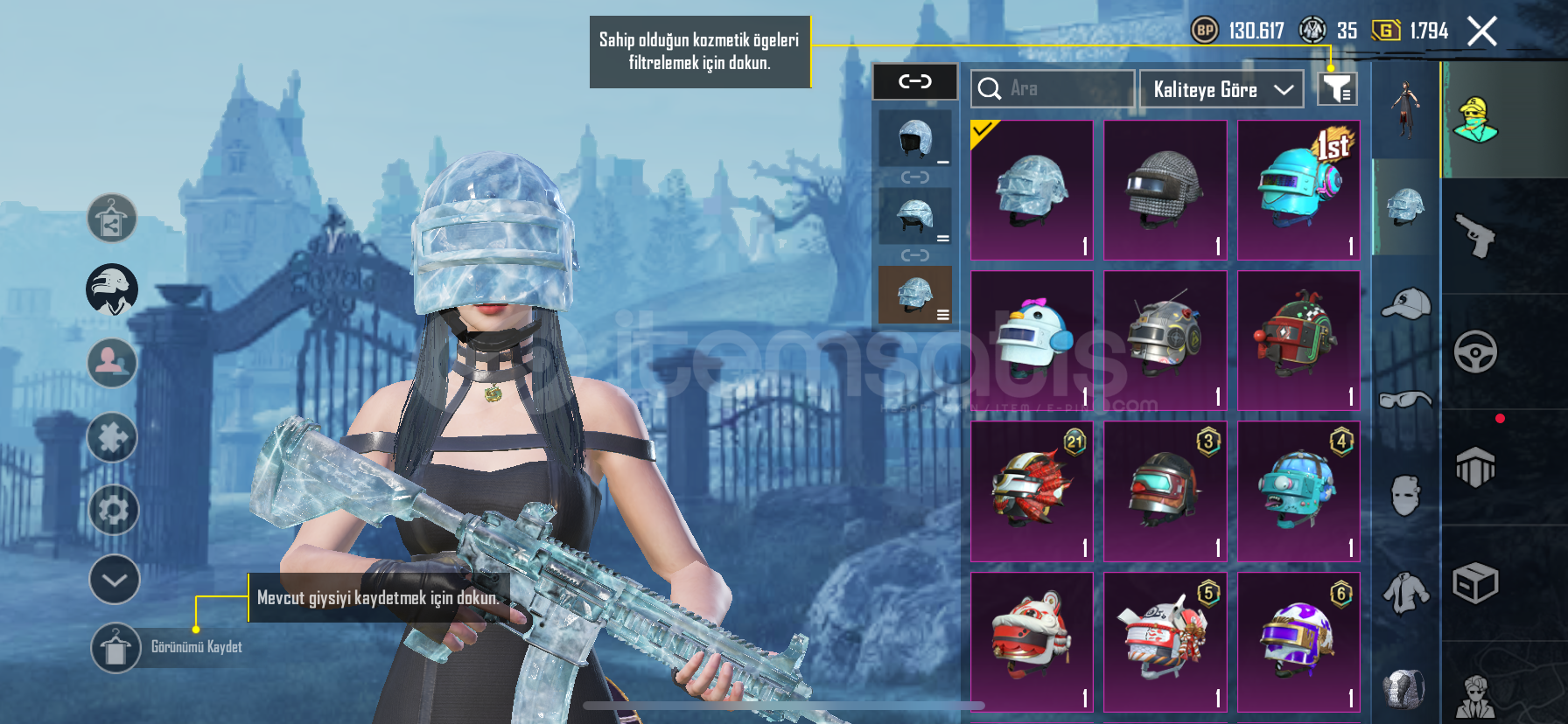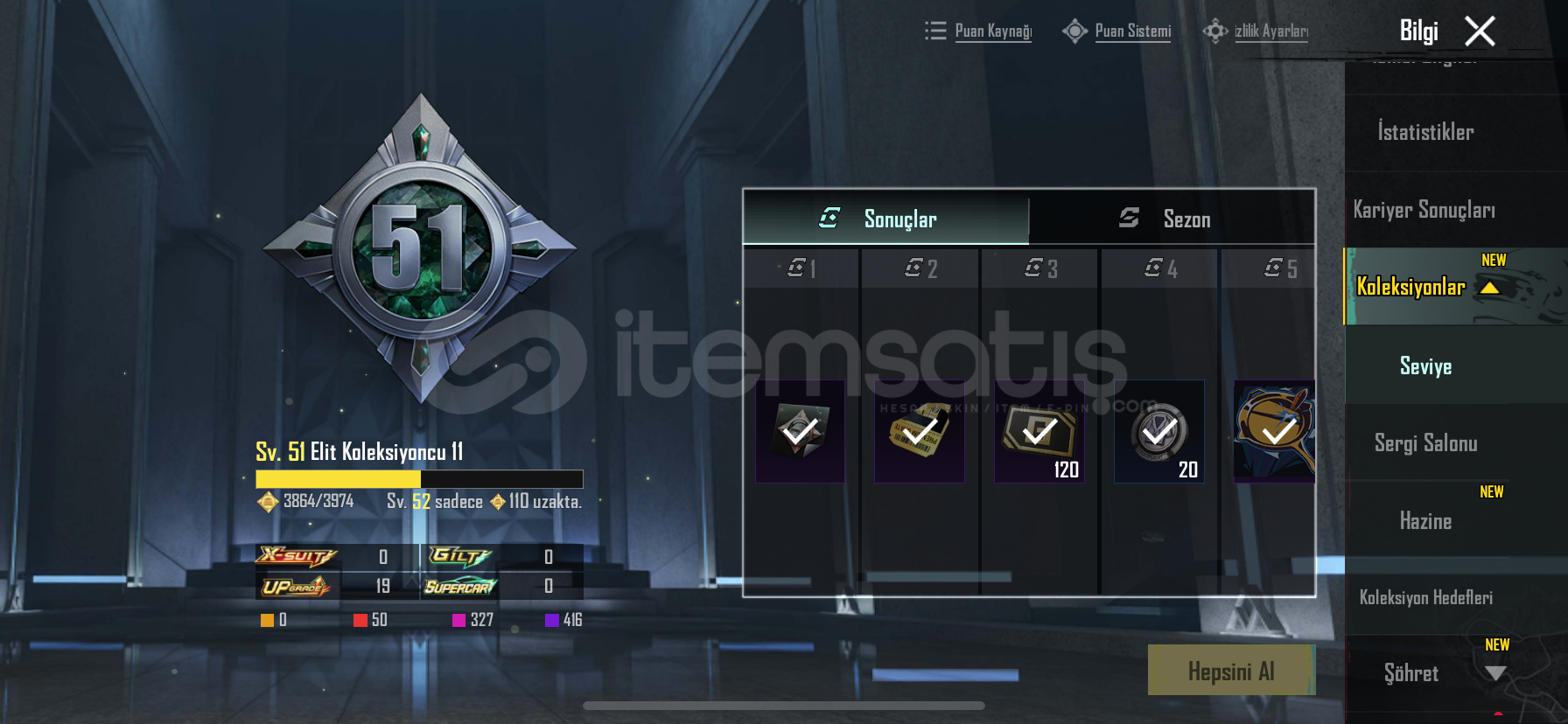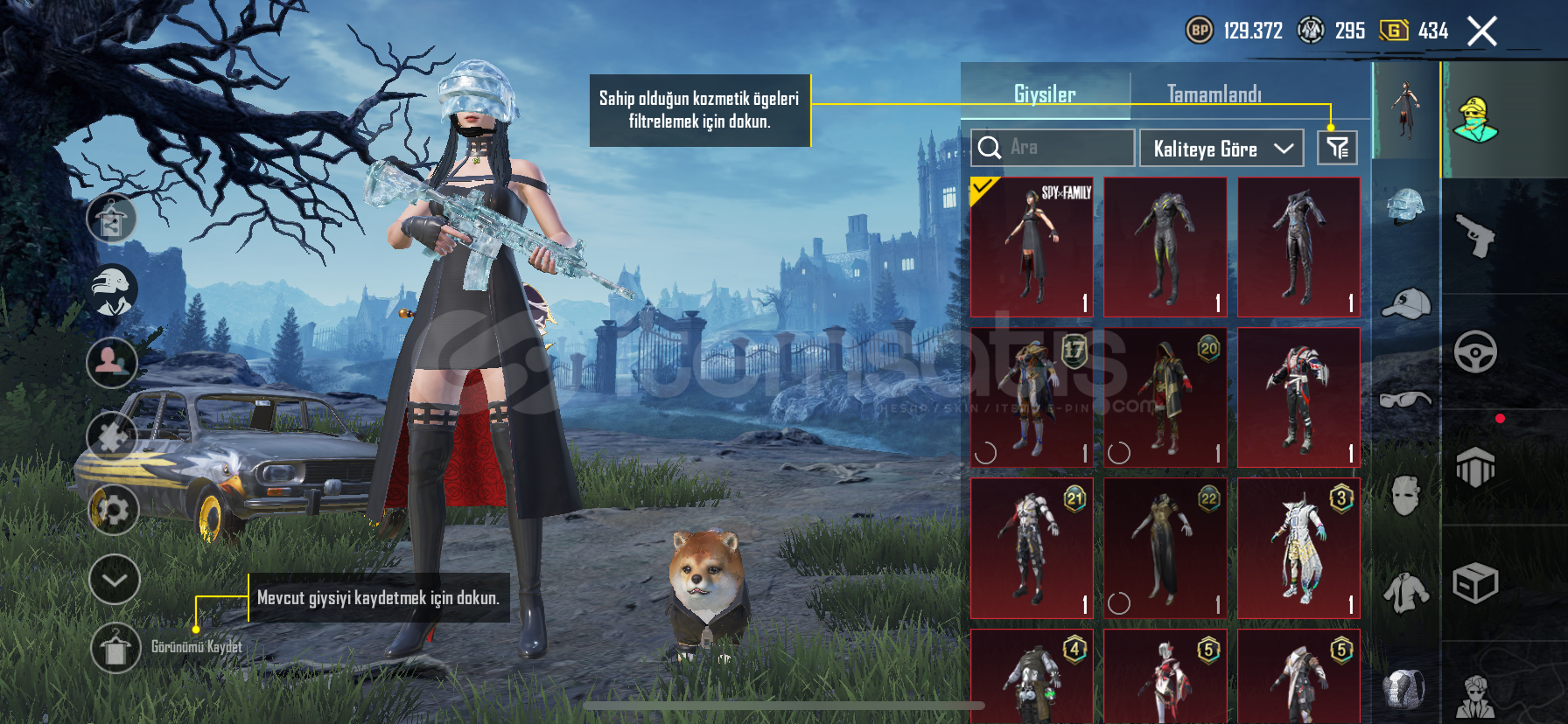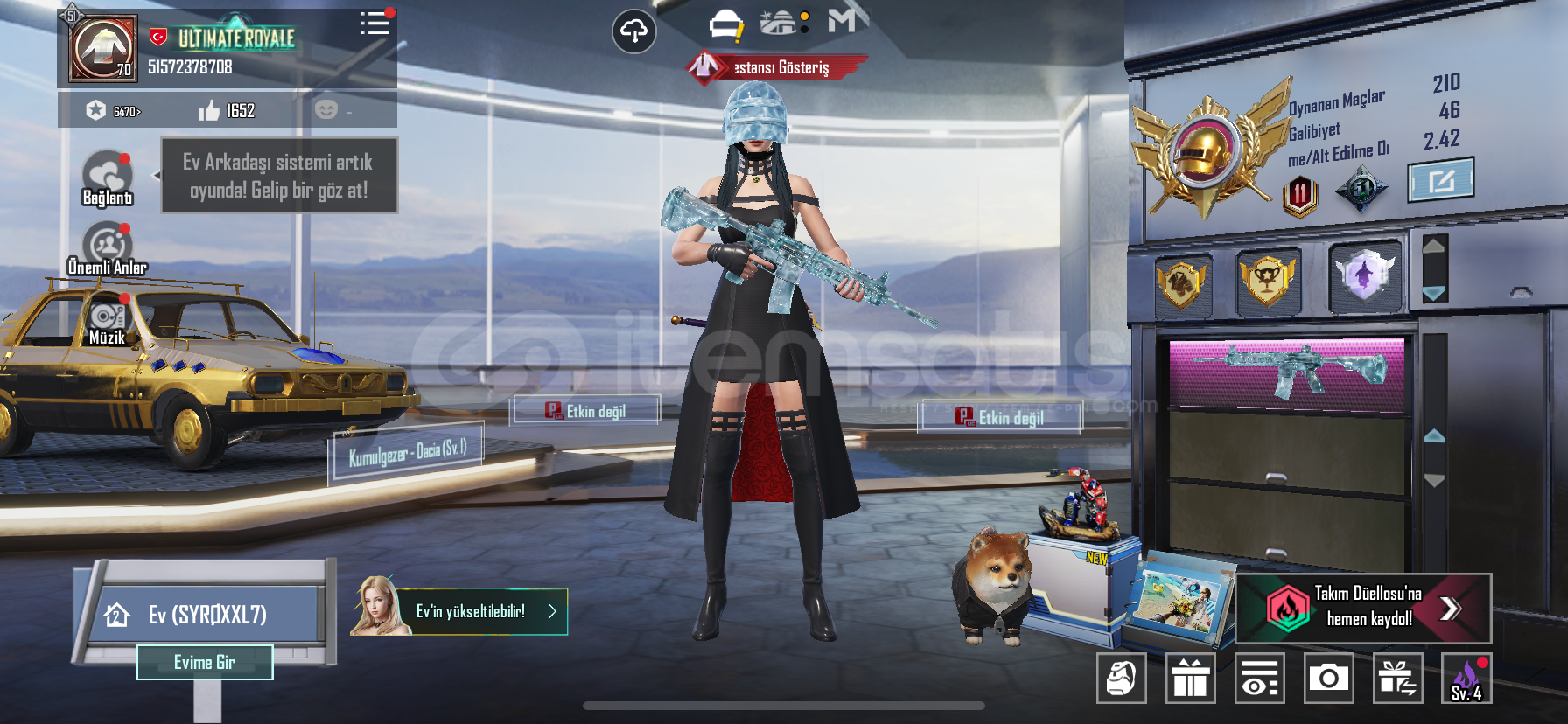 50 destansı 19 yükseltilebilir silah200 uc mevcutturYoldaş var köpek 50seviye koleksiyon 6 modifikasyon parçası mevcutturİşgalci setiAvcı prenses setiDikenler prenses setiGeri kalan destansı rp setleriBuz kask, en havalı kask, 1 sezon kask ve çanta bol tdm kombinli hesapBuz diyarı 6svKüçük Midilli 2svYükselen ejdarha mg-3 2svLider panter dbs 2svGece gladyatör bizon 2svGeri kalan silahlar 1sv...