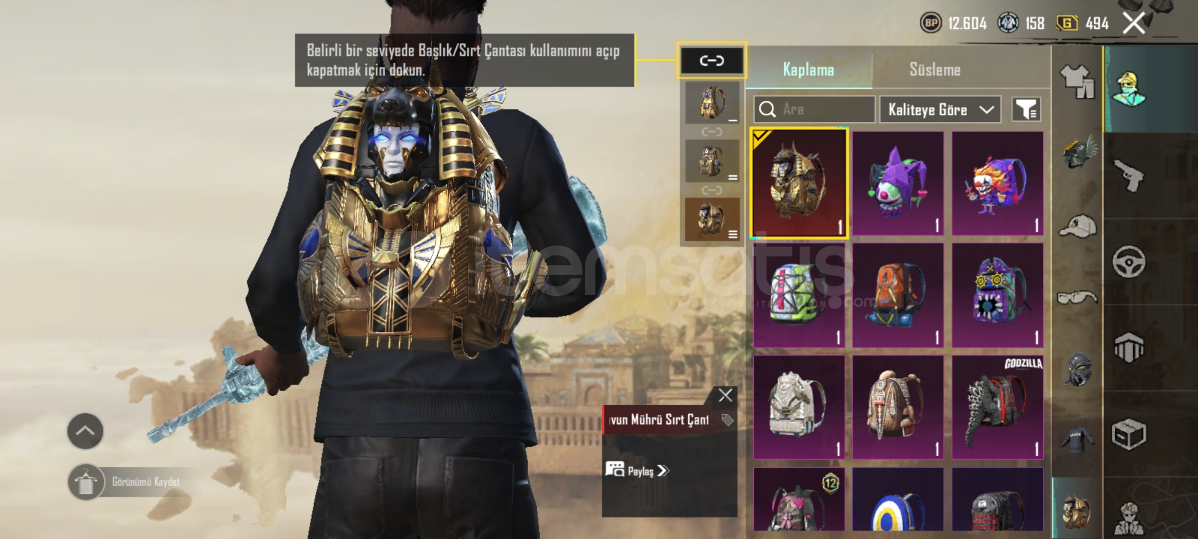 Buz diyarı 6 lvlxsuit 2 lvl anukhraFiravun KediFiravun çantaMaskeli medyum KaskıMaskara Çanta Kısa s4 Saçx suit planörleriFiravun Paraşüt Köpek balığı, neon menekşe ve prizma şıklığı setiİşgalci Maske ,Alan Walker Kapüşonlu Ve daha fazlasıHesapta 3 amblem var,Royel pass 50 kademlik açık artı yükseltilebilir daica var, İD kartı var.Tek Ba...