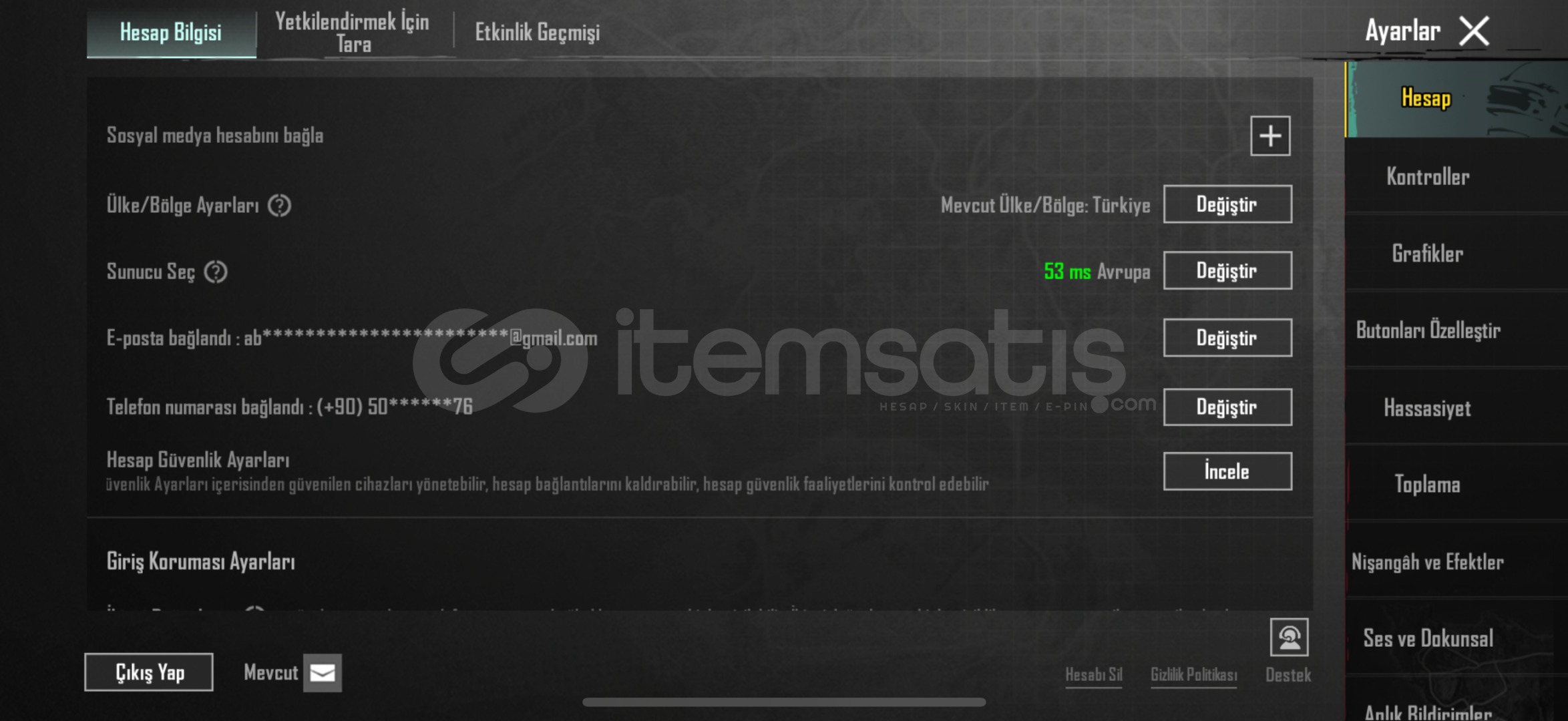 hesap bagları telefon ve Gmail dir ikiside değişiyor