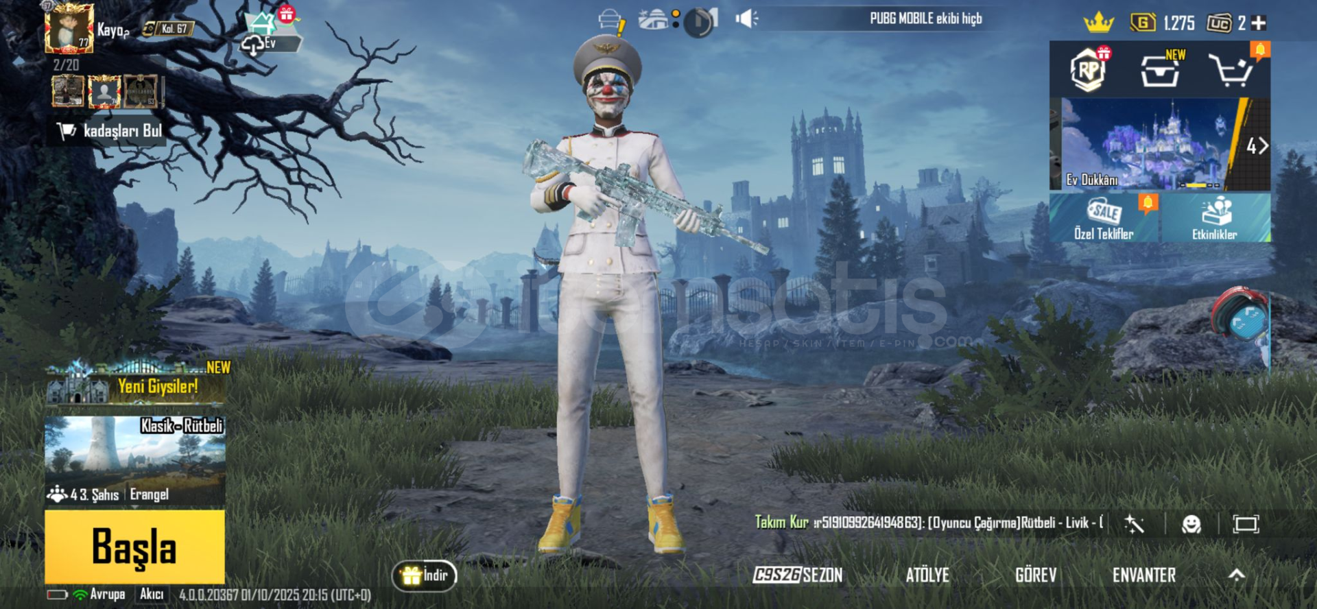 Komutan set ful Ananas set gulDalgıç setiBuz diyarı setiVe 125 adet destansıSilahlar🔫Buz diyarı 7 lvlMaskara 5 lvlVahşet uzi 4 lvlKüçük middilli 4 lvlKasvetli av 3 lvlYaldızlı yeşim ejdarha dp 4 lvlKod kırıcı ak 2 lvl8 bitlik patlama ump 4 lvlMuhteşem savaş groza 4 lvlRp silalarıyla beraber 20 den fazla ölüm mesajıKasklarMedyum kaskKor alev başlışıEjdarha hivay...