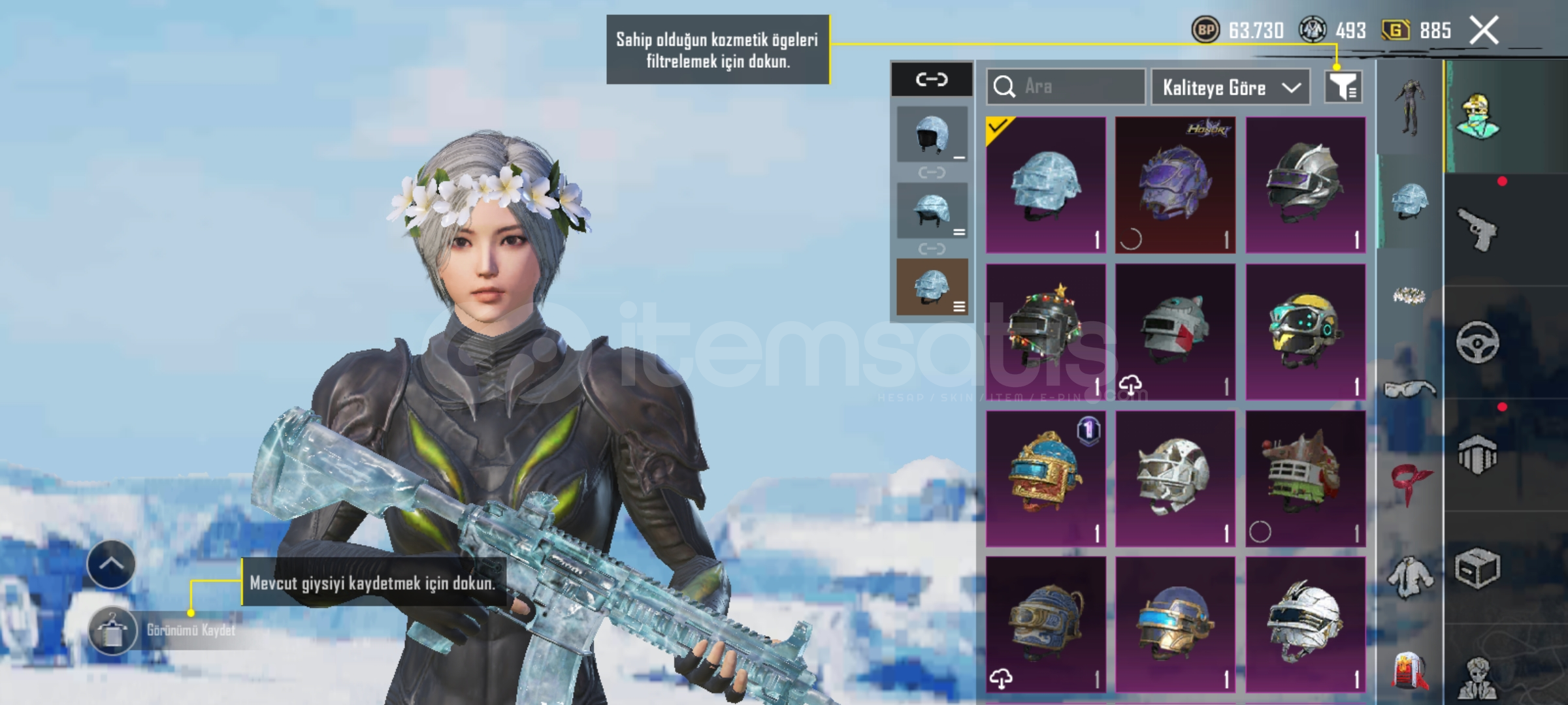 Buz 7 Maxİşgalci seti62 destansıDestansı gösteriş 15 yükseltilebilir RP açık Kod kırıcı AKM 3 seviyeİsim yenileme kartıZarif leylak thamson Max 3 seviye