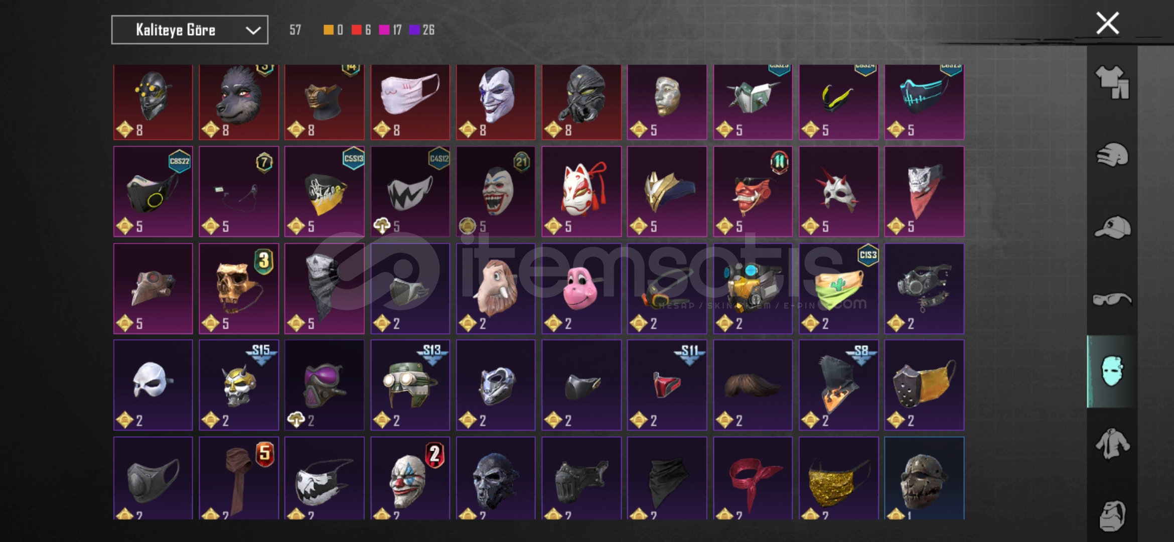 Burdan koleksiyona, setlere ve diğer şeylere bakabilirsiniz 👇🏻ID: 570891050975 DestansıAnukhra 4 Seviye1 Nihai Başlık25 Yükseltilebilir24 Destansı Amblem9 Materyal2 Pet MevcutturKomutan alt üst, Crew Üstü mevcuttur.Hesapta 1650 civarı uc var, royale pass açıktır.300den fazla gün prime + prime plus var.Ev seviyesi 29dur ve dopdolu daha kullanılmamış bir çok ev itemi vardır.PAZAR...