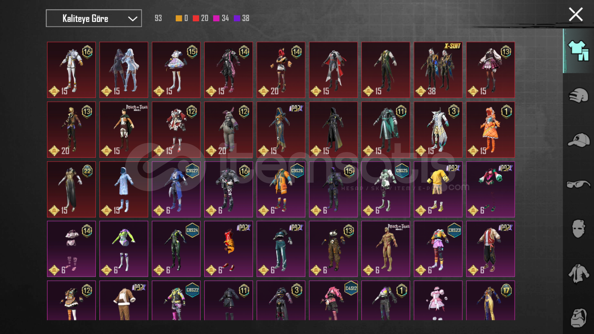 hesapta 1 tane x suit vardır oda 2 lvlhesaptaki asıl olay buz7 olması ve komutan kombinlik giyisiler olmasıananas üstü de var pelerini id bıraktım ordan bakarsınıztel ve mail bağlı alındığı gibi değişilecektirhesap id: 51922382721