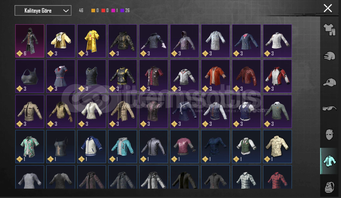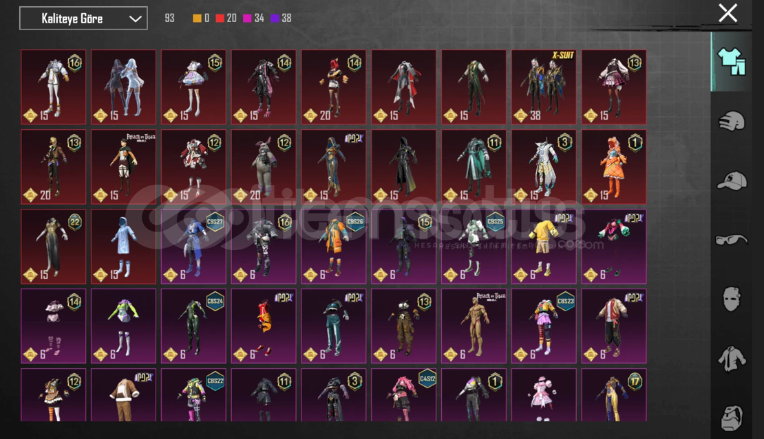 hesapta 1 tane x suit vardır oda 2 lvlhesaptaki asıl olay buz7 olması ve komutan kombinlik giyisiler olmasıananas üstü de var pelerini id bıraktım ordan bakarsınıztel ve mail bağlı alındığı gibi değişilecektirhesap id: 51922382721