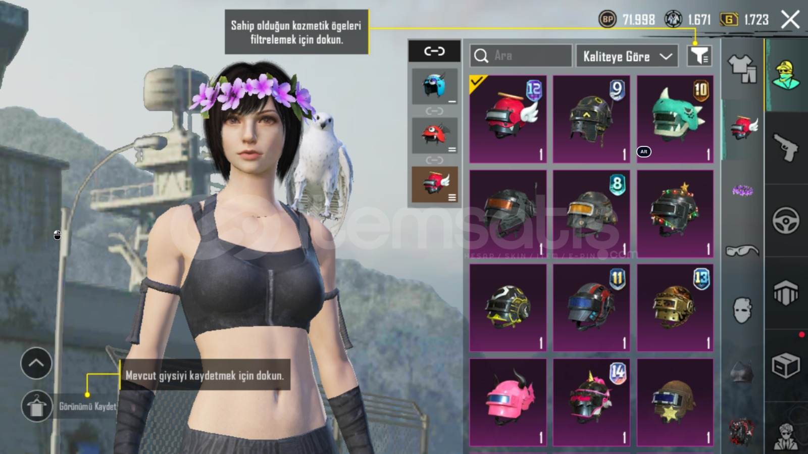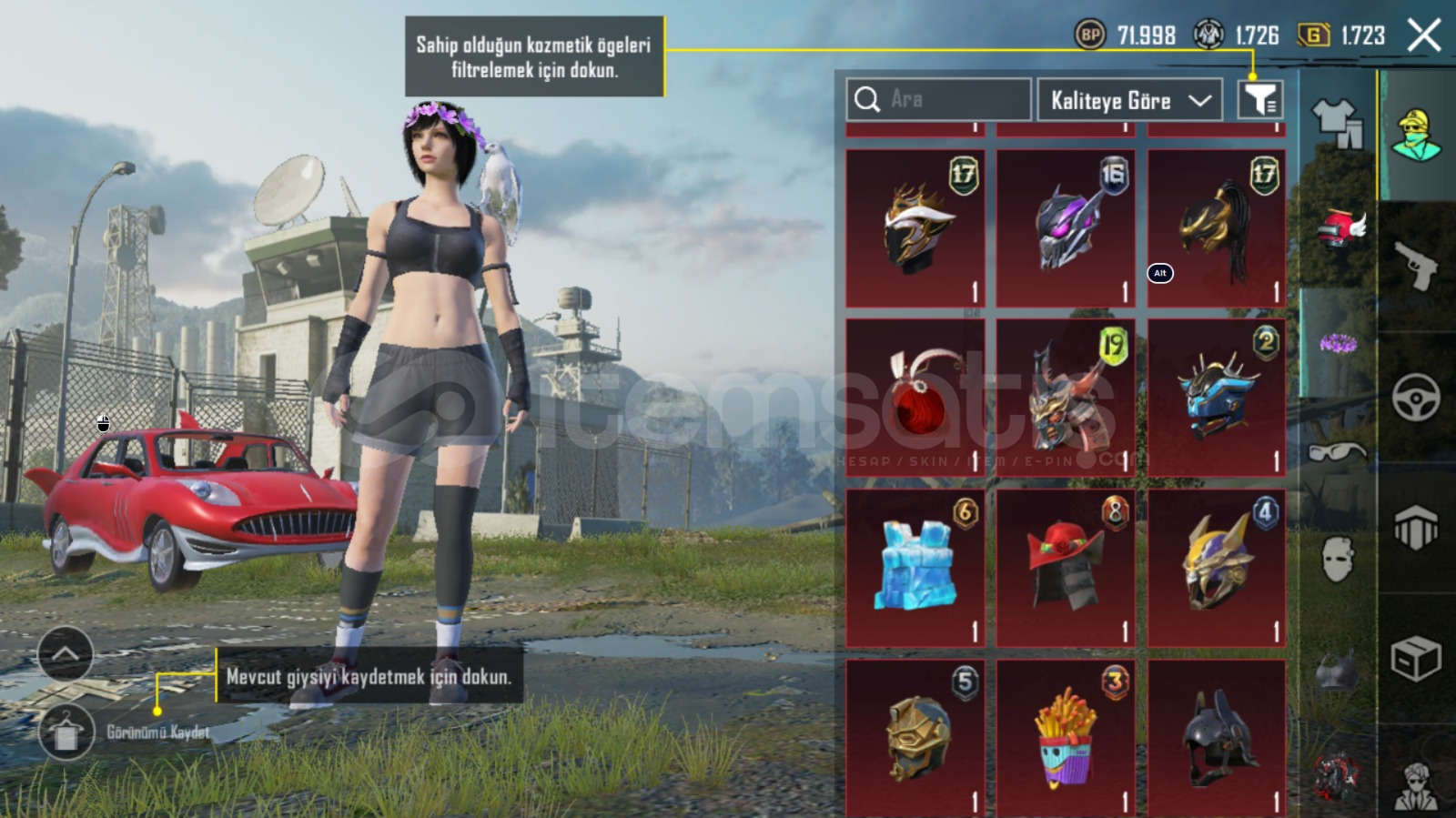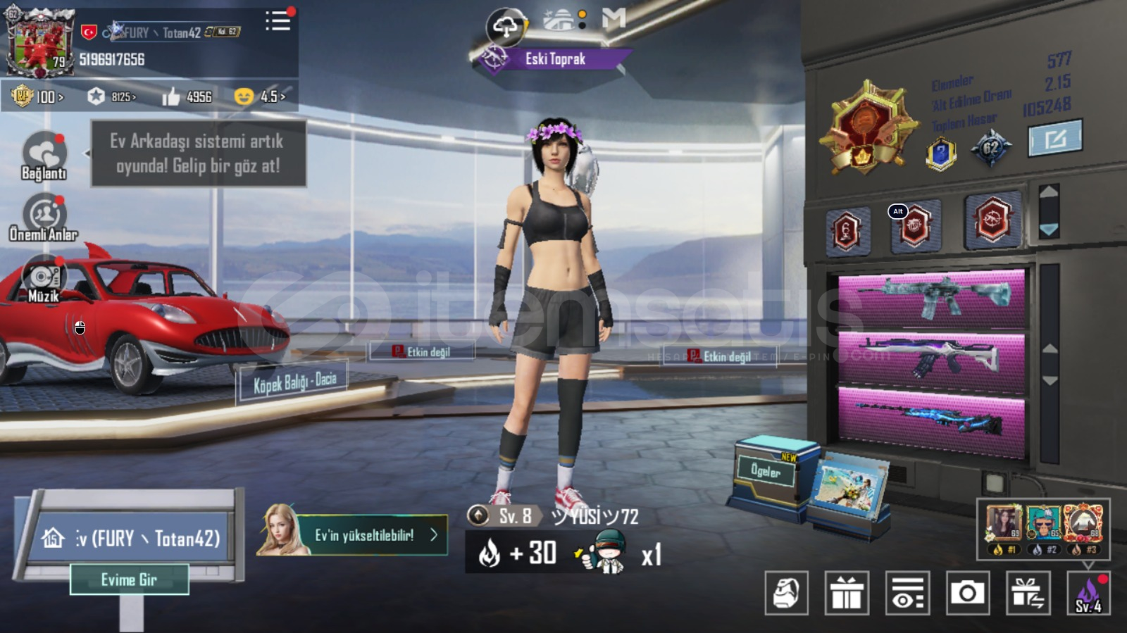 Hesap destansı gosteristir ,royale pass açıkKuzgun xsuit 3level + çantası da vardır Godzilla AVM 4lvlBuzm4 5lvl+ 15tane daha yükseltilebilir silah 79level hesap , yoldaş kuş vardır E posta ve telefon vardır ikisi de sizin vereceğiniz bilgiler ile değişecektir Sorunsuz bir şekilde teslimat olacaktır 100de100 guvenebilirsiniz , pazarlık payı vardır.