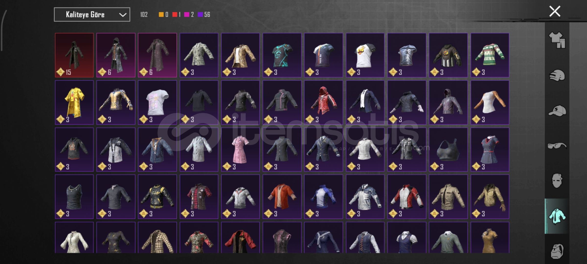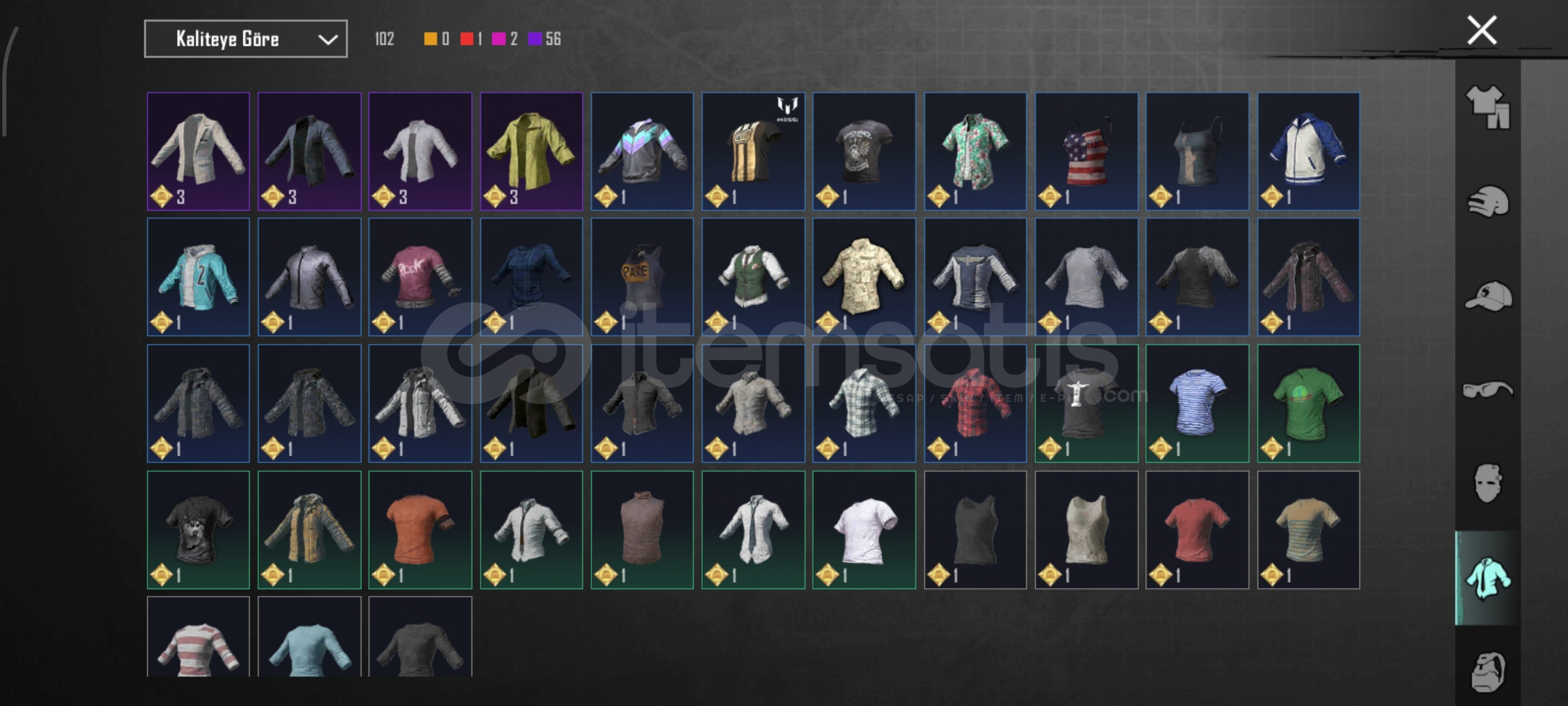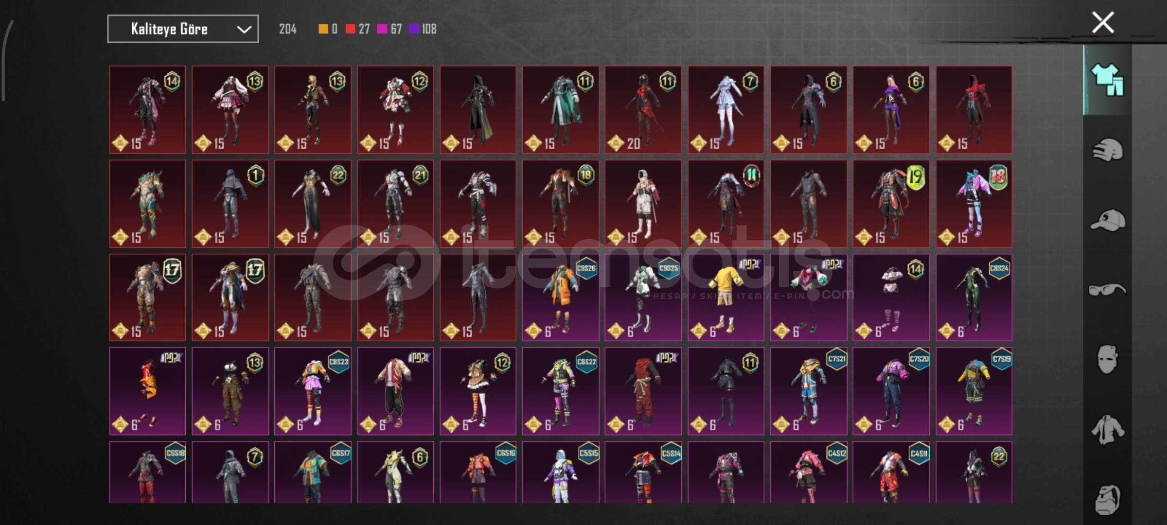 53 koleksiyon47 destanstlı12 yükseltilebilir78 seviyePilot çercevesi1 yıl dönümü çercevesiPlayer unknow üstüKomutan alt/üstAnanas alt/üstCrewS2 maskeAFA şapkasıViktoreyen kadın UAZSaha komutanı setiZırhlı avcı setiBuz diyarı M4 (5sv)Küçük Midilli m762 (4sv)8 bitlik patlama ump (3sv)Katil balkabağı groza (1sv)Rengarenk parıltı (1sv)Zarif leylak thampson (3sv...