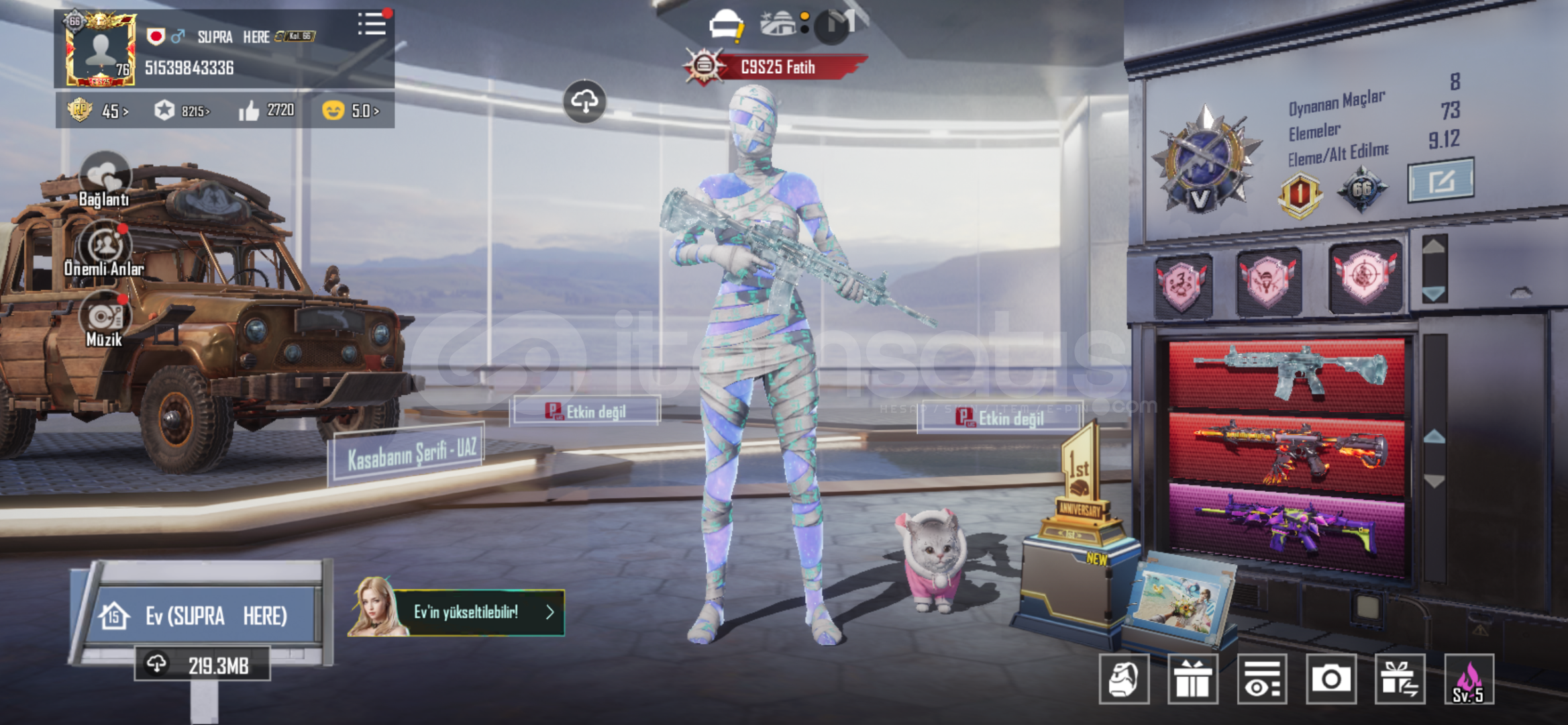 PC setup dizeceğim için hesabımı satıyorumc9s25 FATİH hesabıdırID:51539843336 isteyen hesabı incleyebilir128 destansı 1 nihai 1Xsuit(2yıldızlı) bulunurBuz m4 7svy Yedi denizler akm 4svyKüçük Midilli m7 4svyEMP ump 4svyGöksel işaret uzi 4svyGecenin şarkısı groza 4svyYüksek ses scarl 4svyYükselen ejderha mg 4svyDenizlerin evrimi ump 3 svLider panter dbs 3 svyŞirin kedi k...