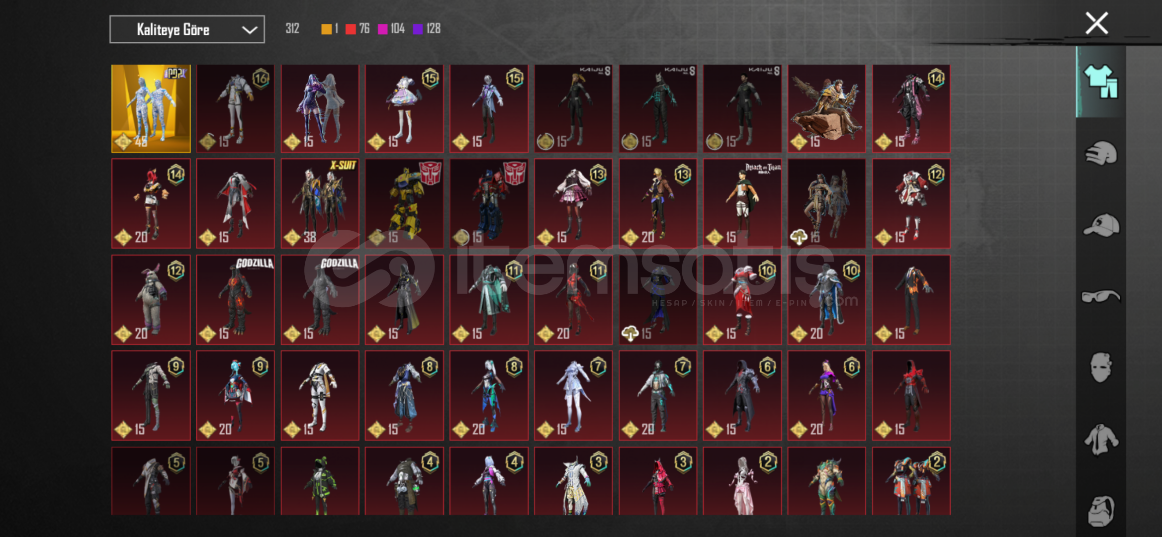 128 destansı 1 nihai 1Xsuit(2yıldızlı) bulunur