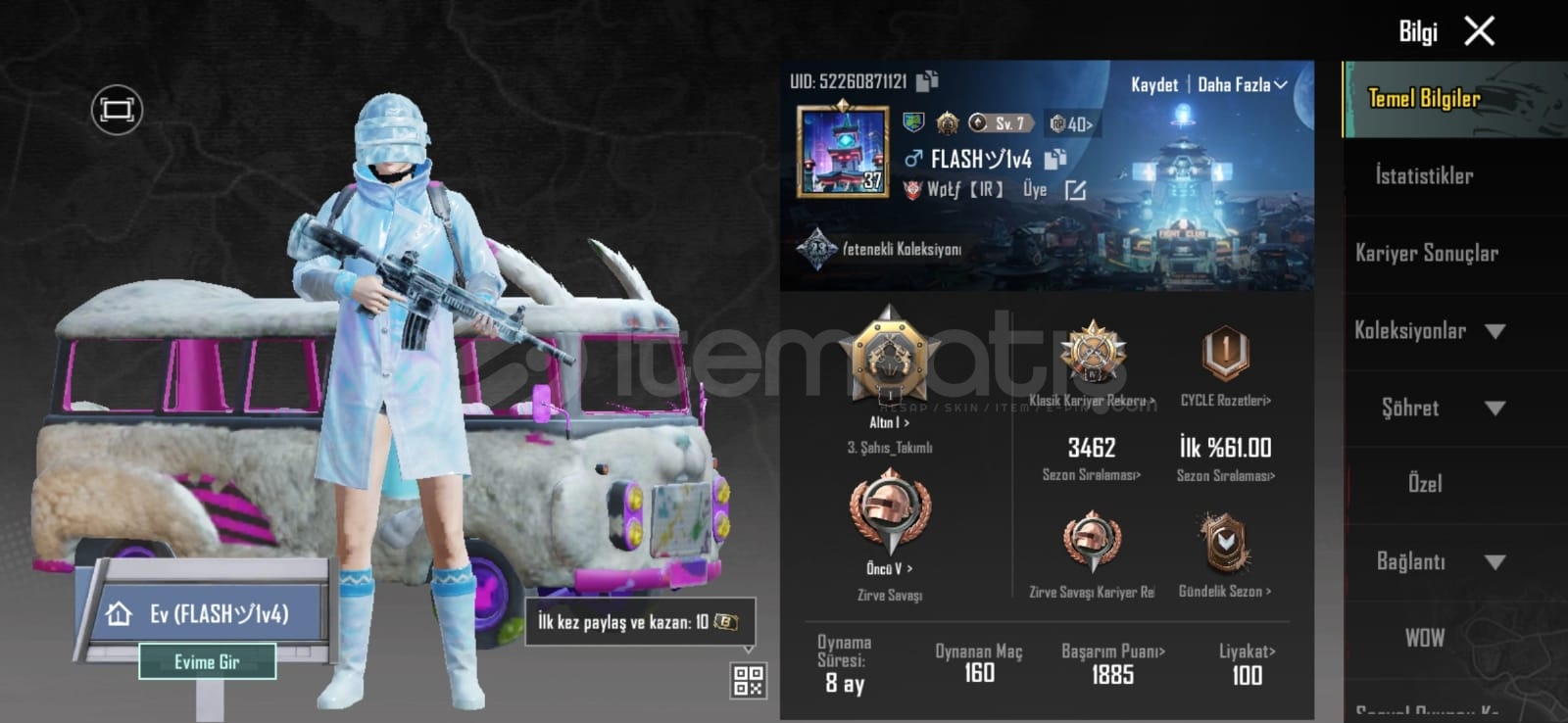 Arkadaslar hesap arkadısımın geri cekme fl olmaz merak etmeyinkontrol etmek isteyenler icin ;ID:52260871121oynama süresi 8 aydır sadece mail bağlıdırokuduğum icin hafta ici 18:00 24:00 hafta sonu 08:00 24:00 müsait olurumaz cok indirim olur