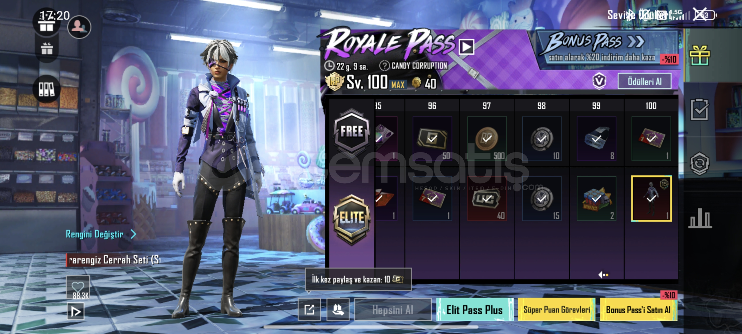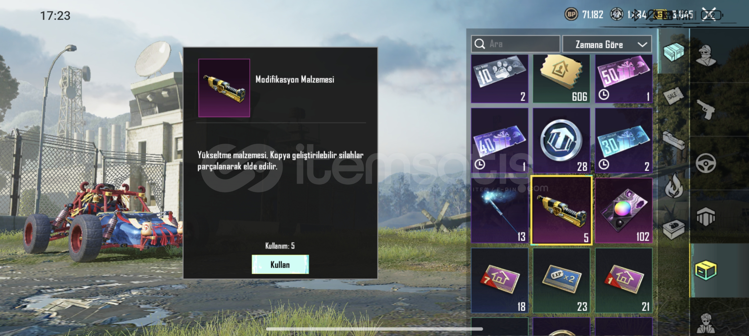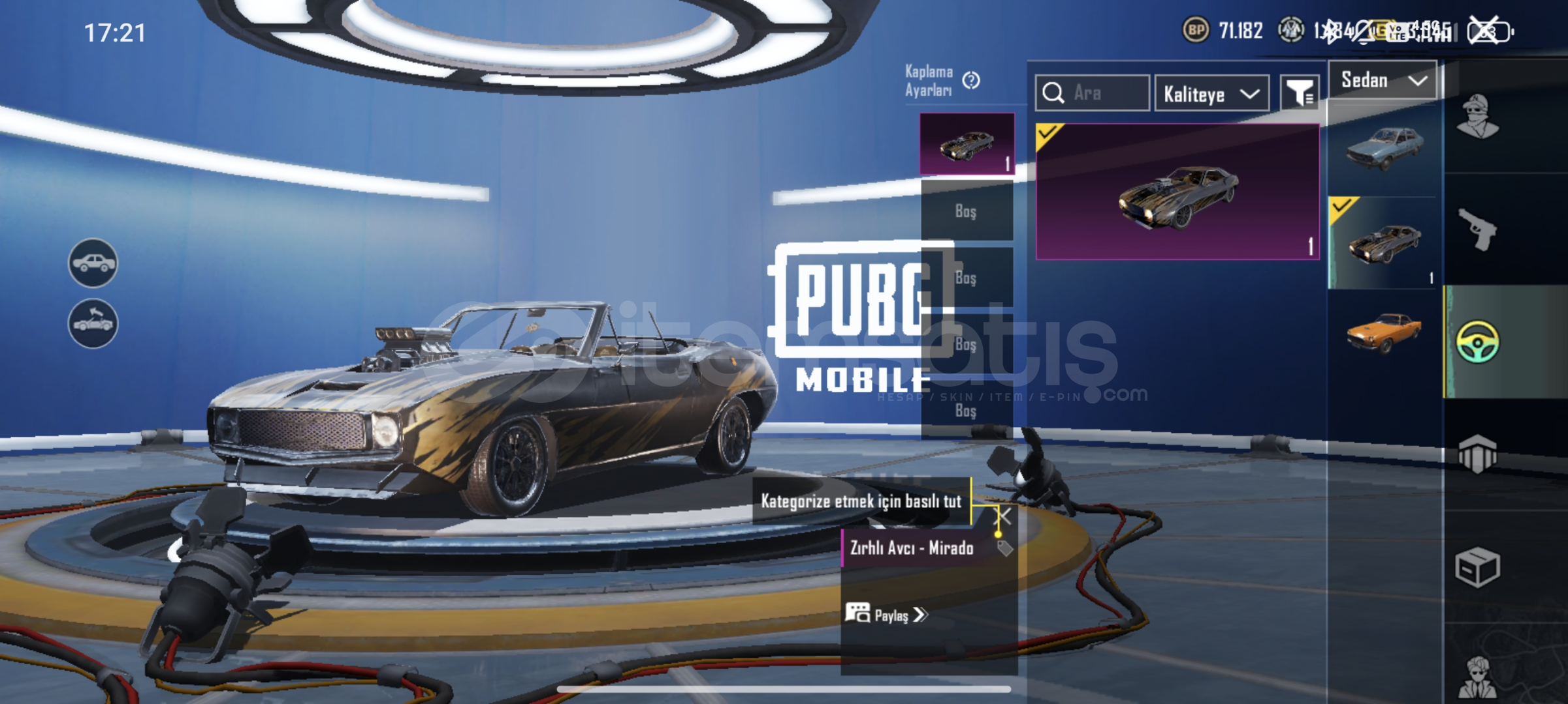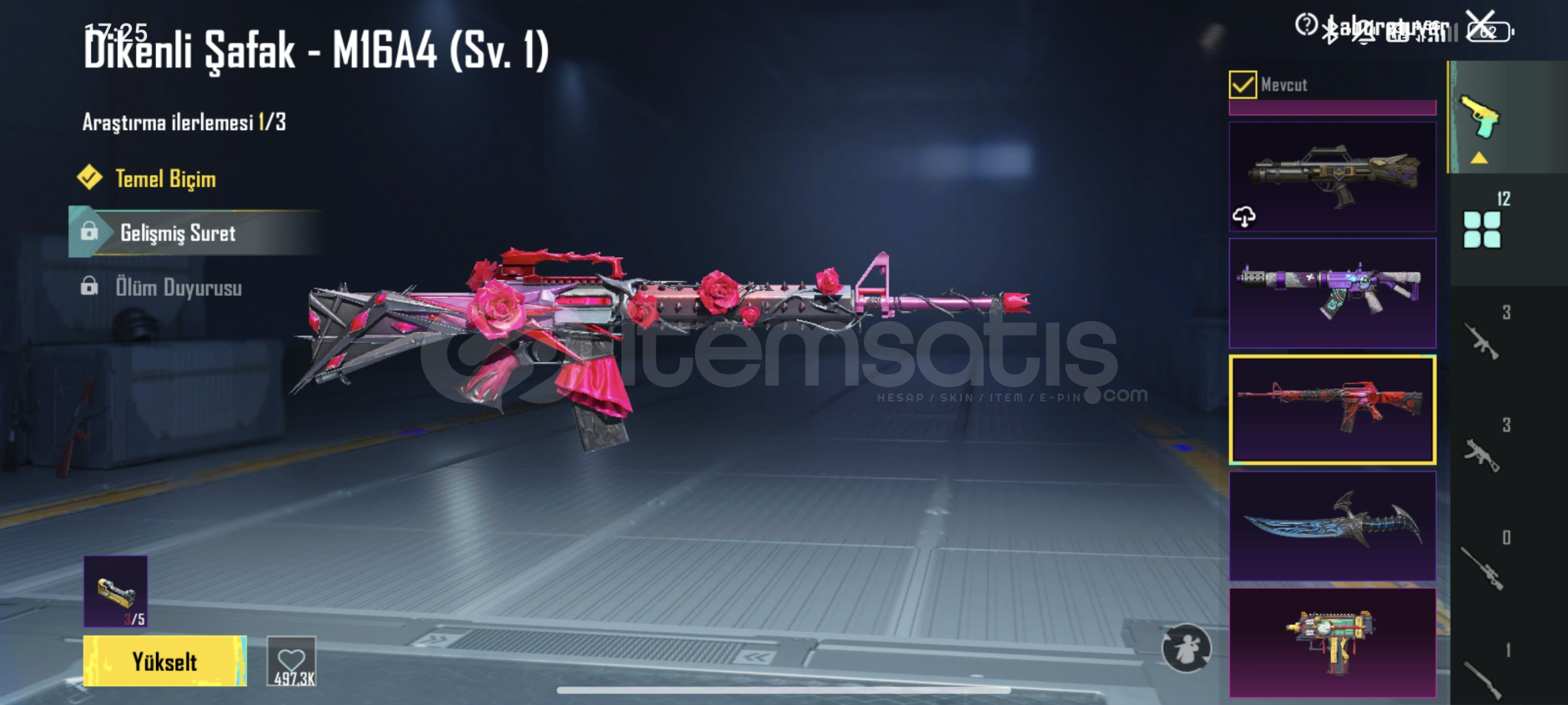 hesapta 12 yükseltilebilir silah vardır.scar-L,ump ve uzi fulldür.hesabın içinde 226 uc vardır 3 destansı amblem vardır koleksiyon seviyesi 43, 5 materyal vardır RP açık ve 100 dür.hesabın rankı as atoritesidir ve 32 destansı vardır.gmailiniz ve telefon numaranız bağlanır.