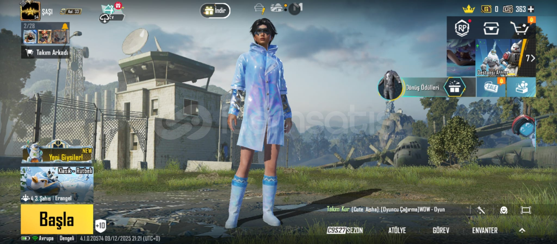 HESAP TAM MAİNLİK EMEK HESABI4 YÜKSELTİLEBİLİR 1 TANESİ FULL İÇİNDE 363 UC VARROYALE PASS AÇIK ALANA HAYIRLI OLSUN