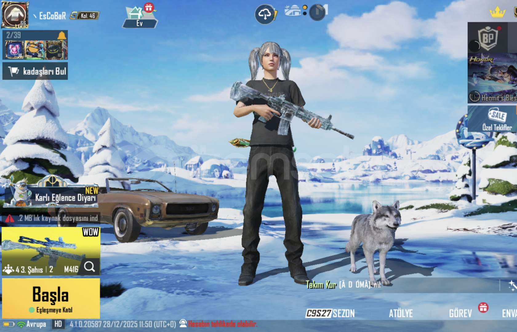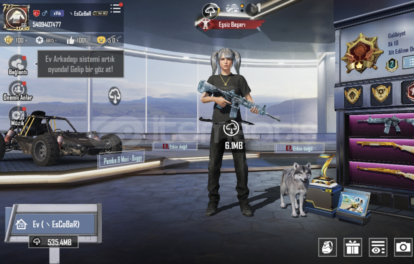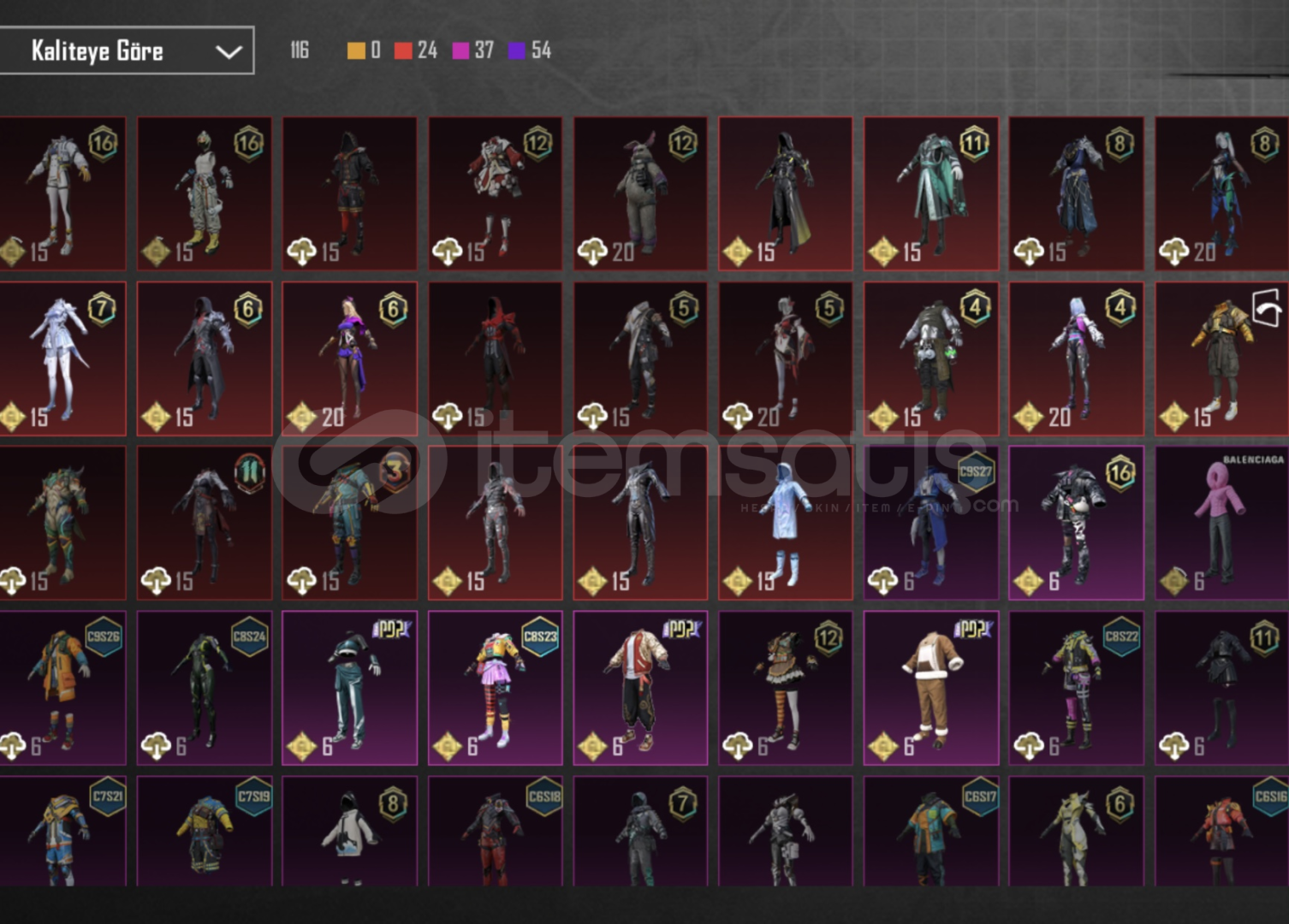 Hesap eski sezon hesabıdırsezon 4 yüz ve sezon 5 saç vardırsezon 3 kar98 ve pompalı ve giysisi vardırBalenciaga setiAmansız Süikatsçı seti6.sezon Pofuduk tavşan setiEşsiz başarı ve giysisiBuz seti tamdırBuz m4 3 seviyeToplam 21 yükseltilebilir varİki adet yükseltilebilir araç vardır biri Uaz torosdur4 adet yükseltilebilirden ayrı bomba deseni varÖzel uçma efekti ve...