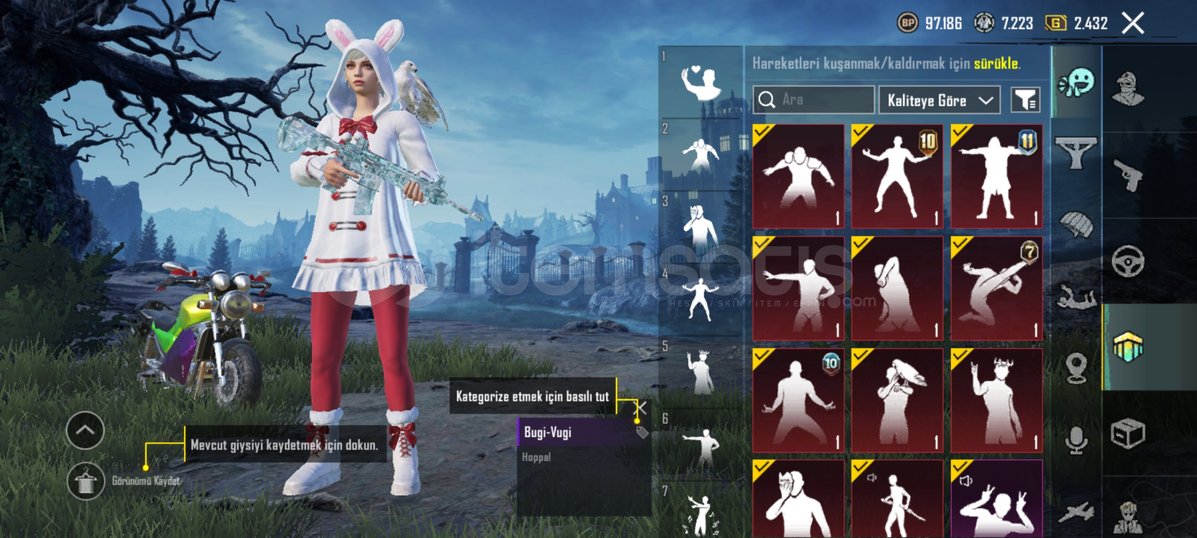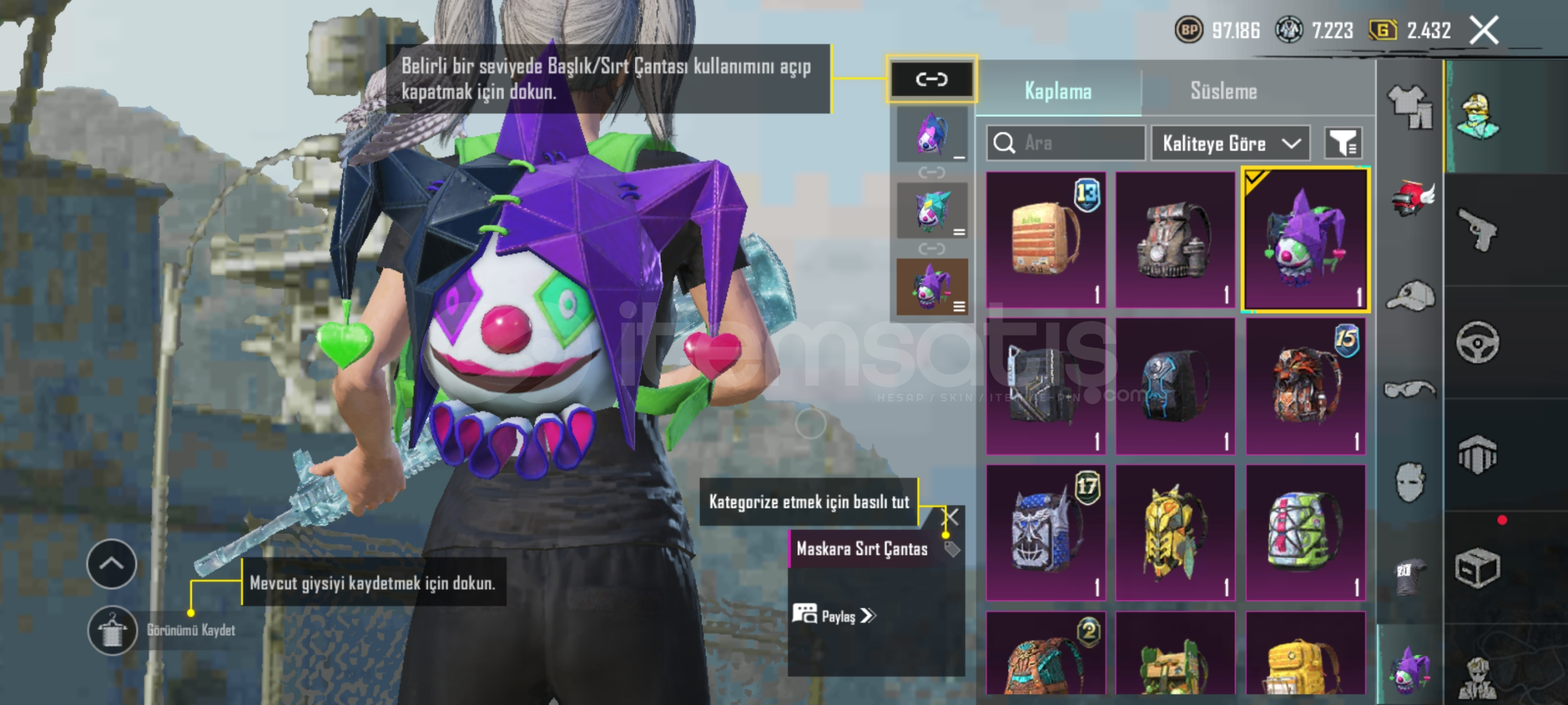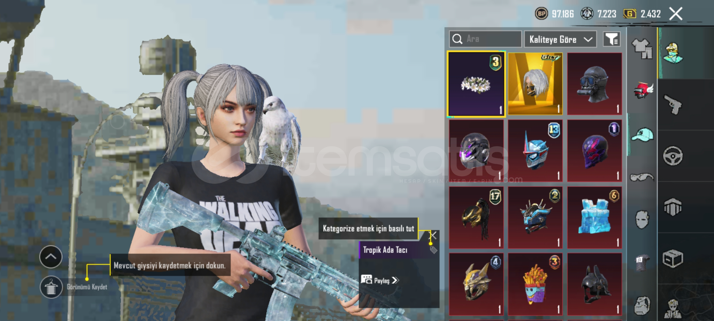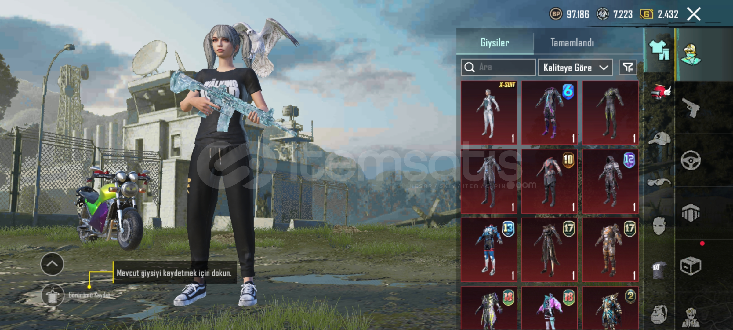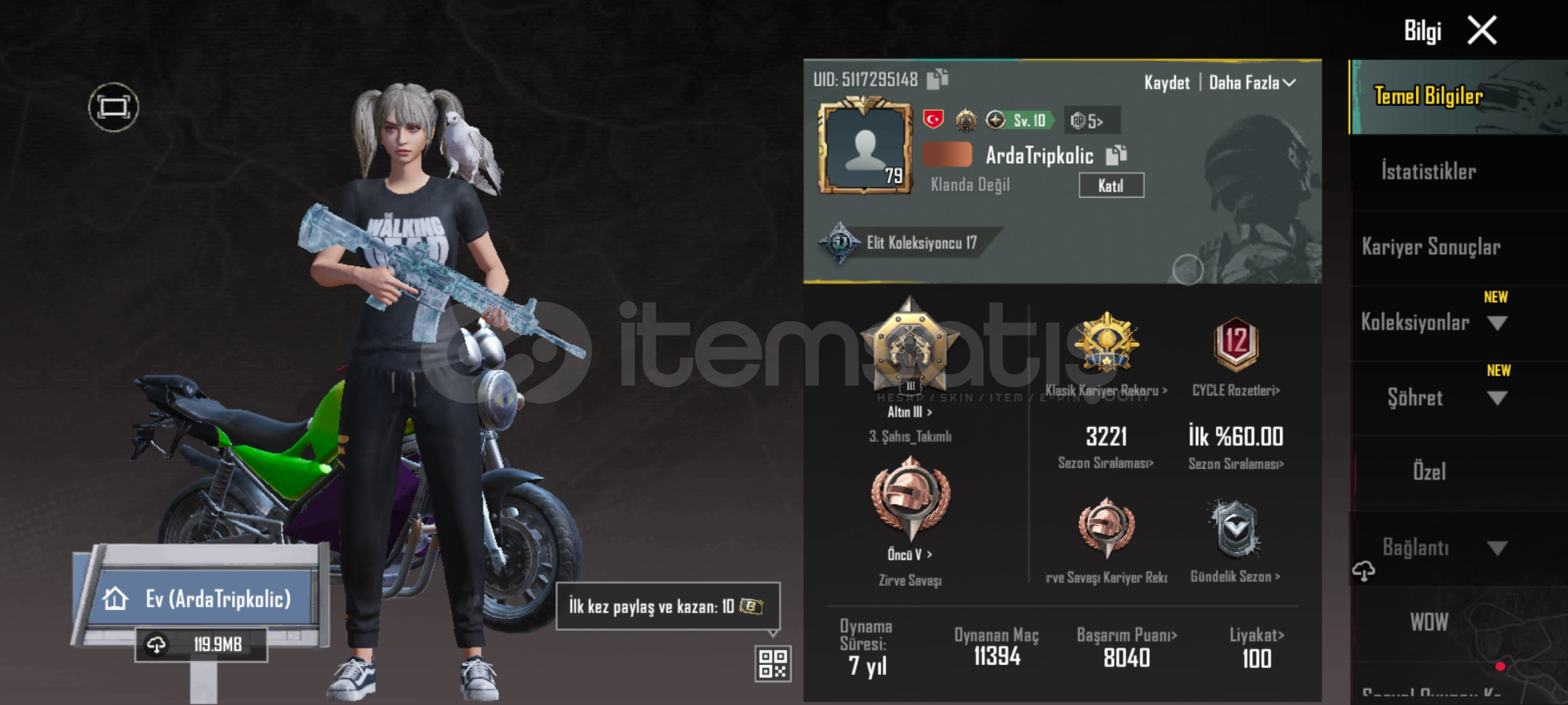 Oyunu oynamadığım için hesabı satmak istiyorum tüm girişler bağlı ama iletişime geçerseniz hepsini sizin için değiştirebiliriz her araçta desen var tekne hariç 79 seviye, 32 adet ünvan var, özel saç vardır, fazlaca emoji var, toplamda 206 adet silah deseni bulunup 15 adet yükseltilebilen silah vardır Midilli m762 vb.