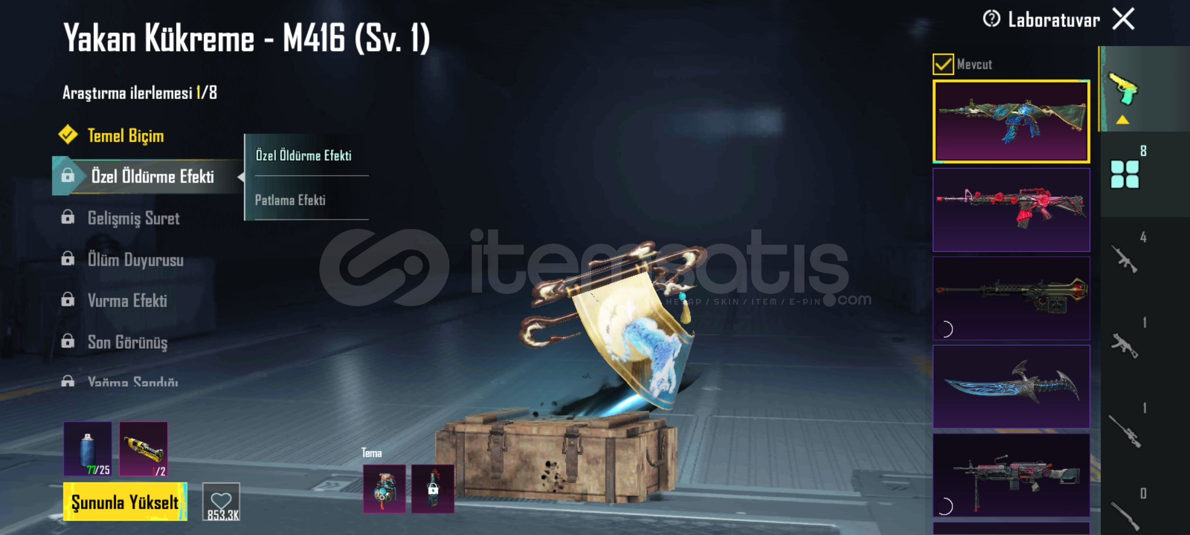 hesapta 2 adet m4 ve bikaç yükseltilebilir var buz 2lvl yaka kükreme 1 lvl temiz hesap fazladan 1 mataryel var