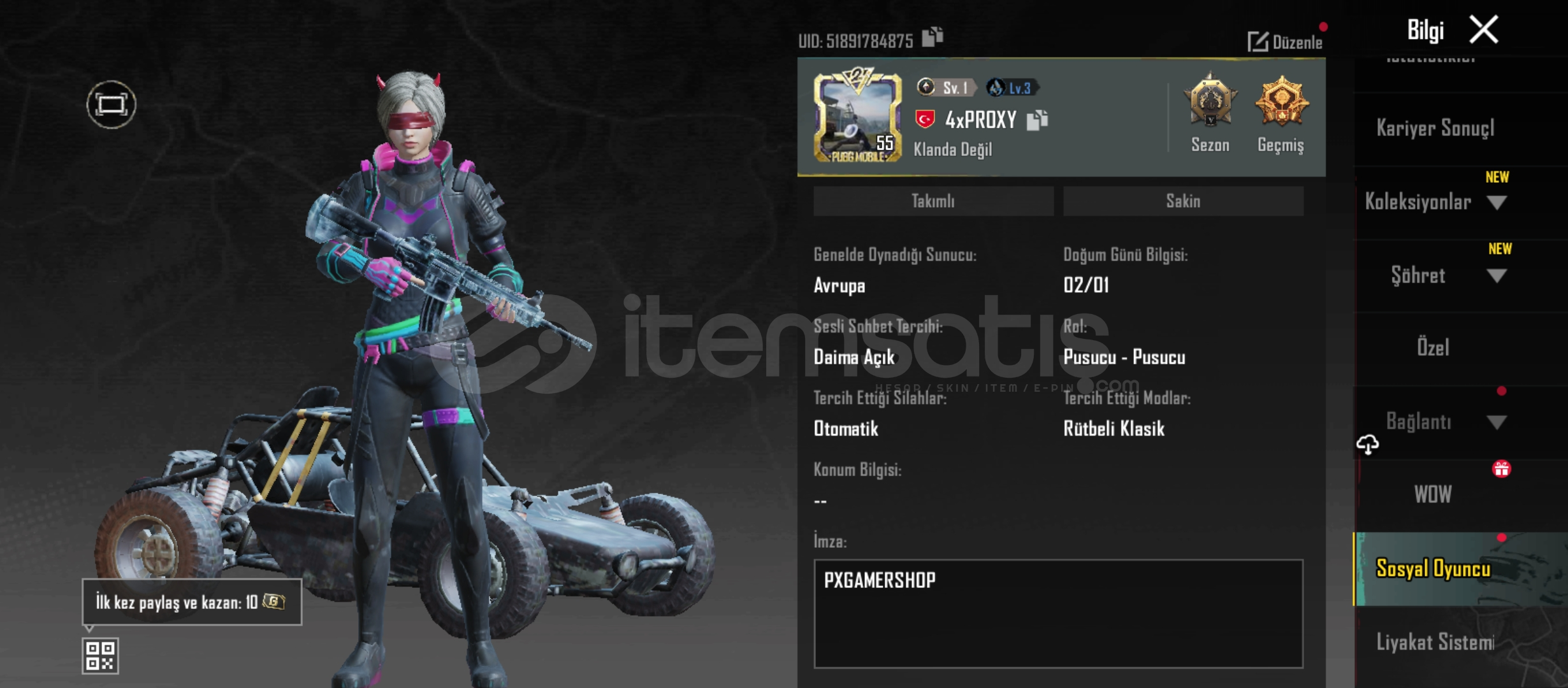 SorunsuzTel üstünüze yapılırGörselde hesabı detaylı görebilirsinizAktifsen anında teslimatİade yapılmaz hesabi teslim ettik ten sonra