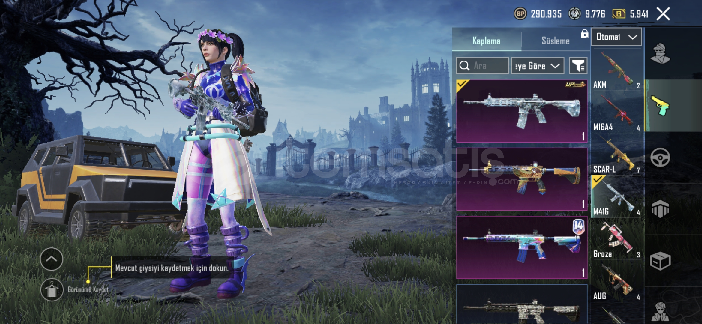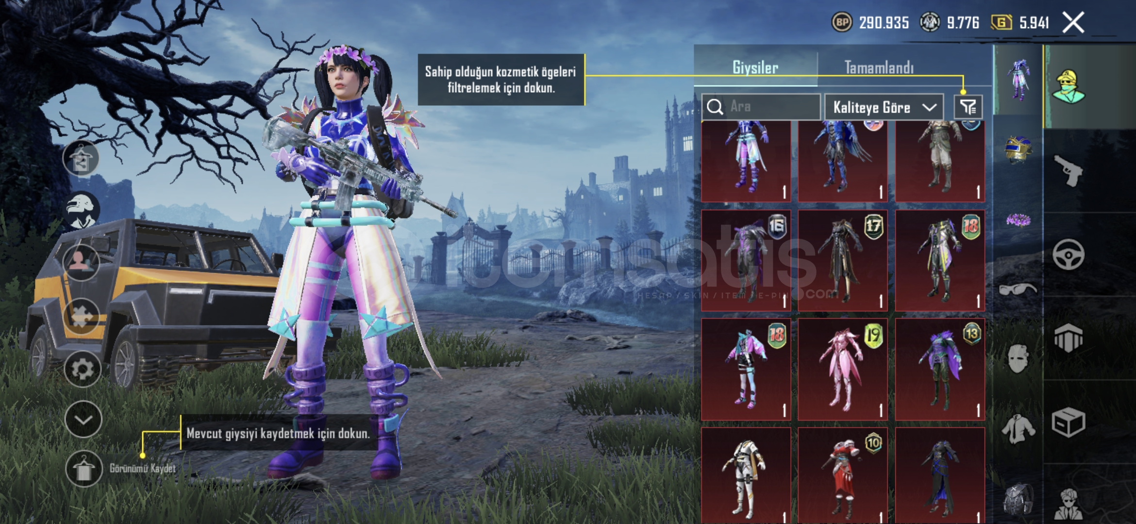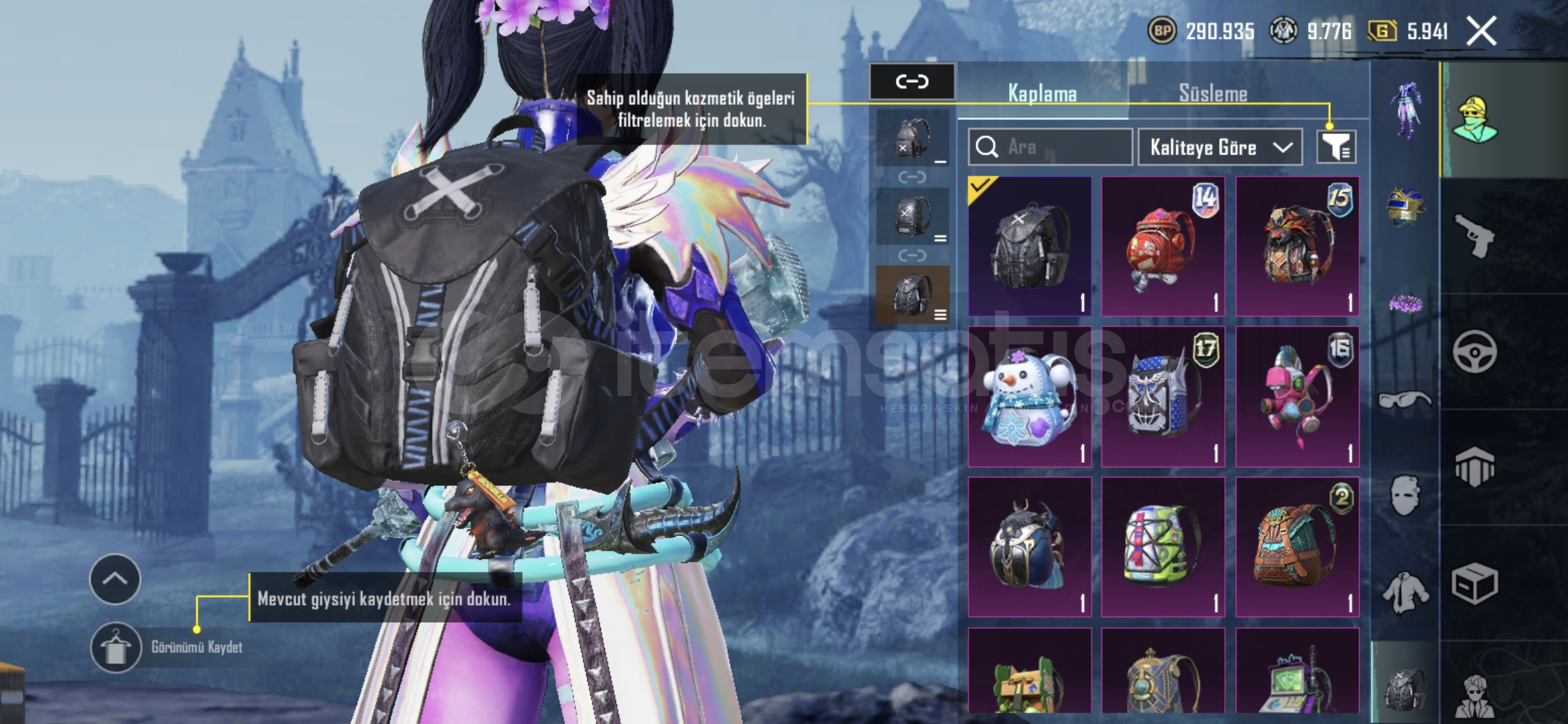 5 yıllık hesap 36 tane destansı var uaz desenlerim var silah desenleri paraşut kask çanta panda kafası s5 saç var bir çok daha şeyler var.