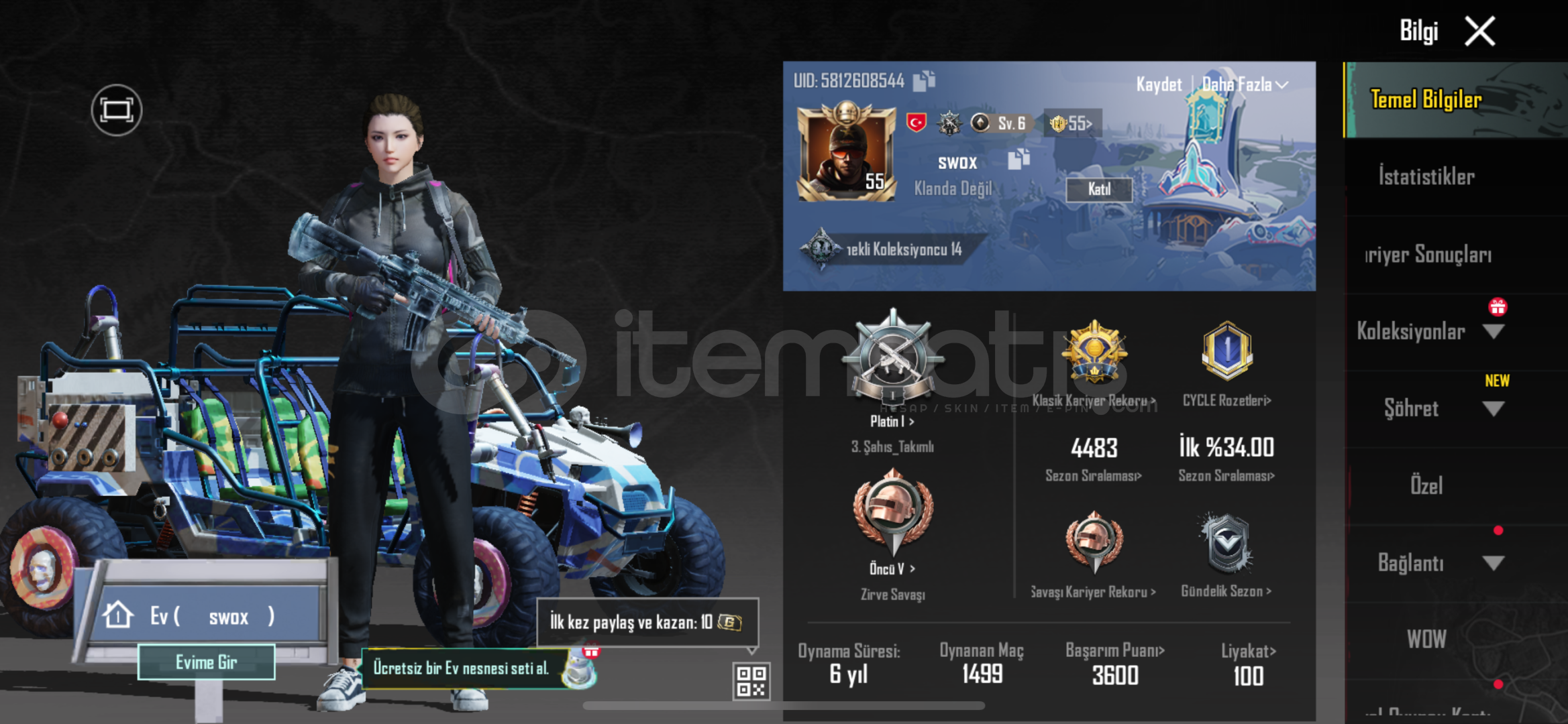 BUZ DİYARLI RP AÇIK GÜZEL HESAP +400 UC