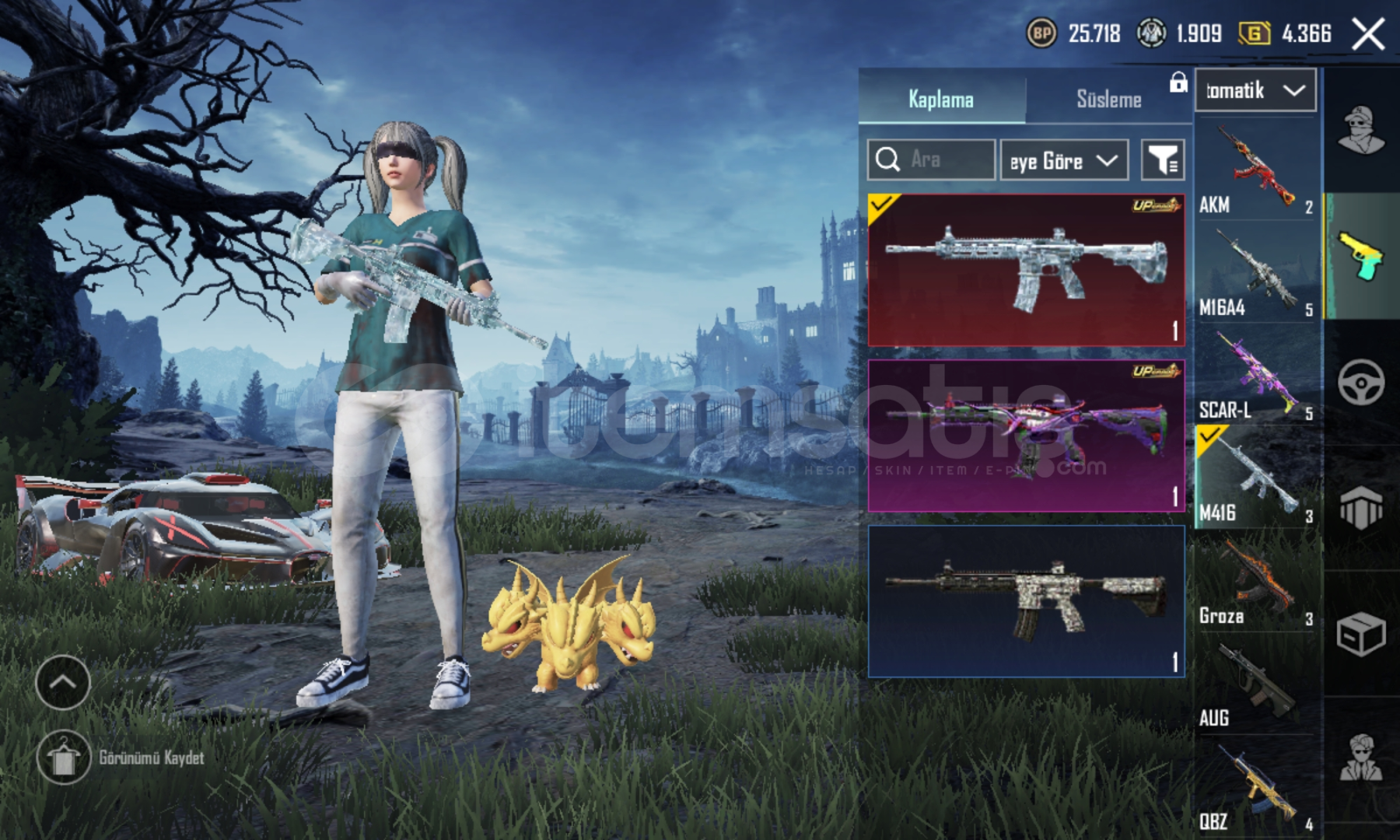 Hesap form bakımından tamamen temizdir.SilahlarBuz diyarı M4 fullMaskara M4 5Anukhra Ump 4Gibi toplam 12 tane kill chatli silahBazı KostümlerMaskara seti - Maskesi5 Farklı godzilla setiBazı mytic forse setleri3 NihaiFiravun çantaHesap destansı odaklı bir hesap olmamakta ve bundan dolayı royale pass setleri toplanda 4 tane destansı sayısı buna rağmen fazla