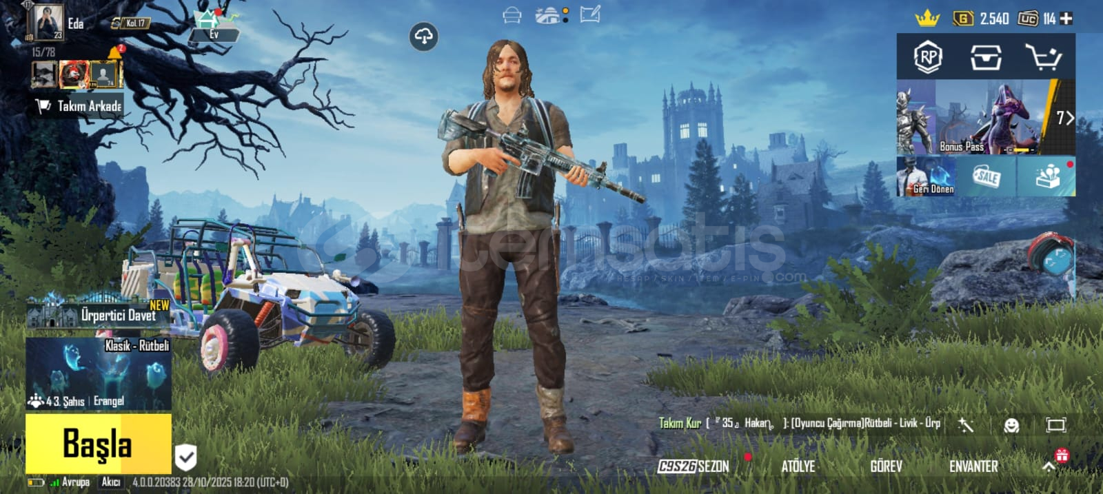 Hesap 3 destansıdır.Hesapta darly dixon set vardır.Hesapta Buz m4 vardır 2 seviyedir.Güzel kasmalık hesaptır.RP ve BonusPass açıktır.Hesapta 114 uc varıdr.(RP fullenince toplam 274 uc olacak)Tek bağ Twitterdir devredilecektir.ID kart vardır.Hesabın videosuhttps://youtu.be/pmyBaEUni9Y?si=ae8WC8cqLplq9vHz