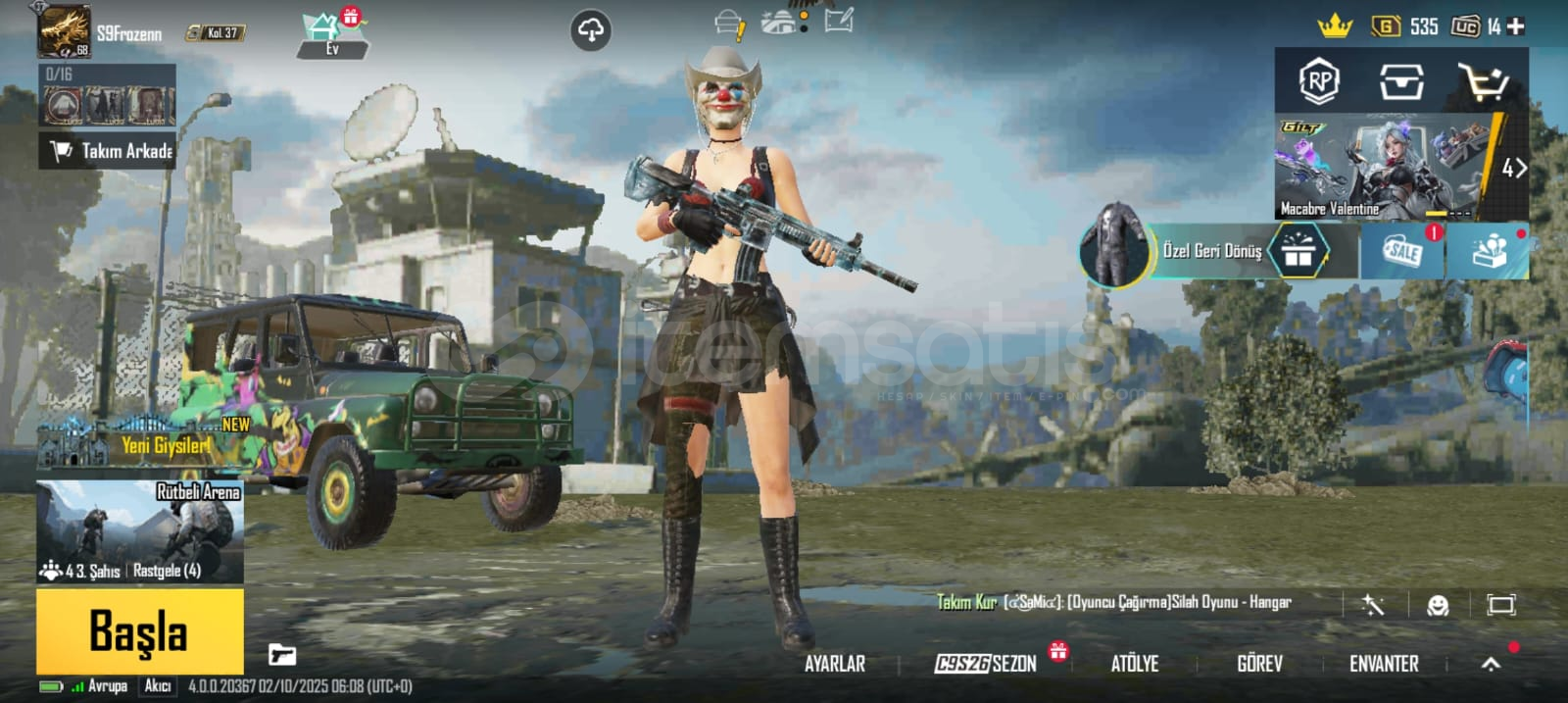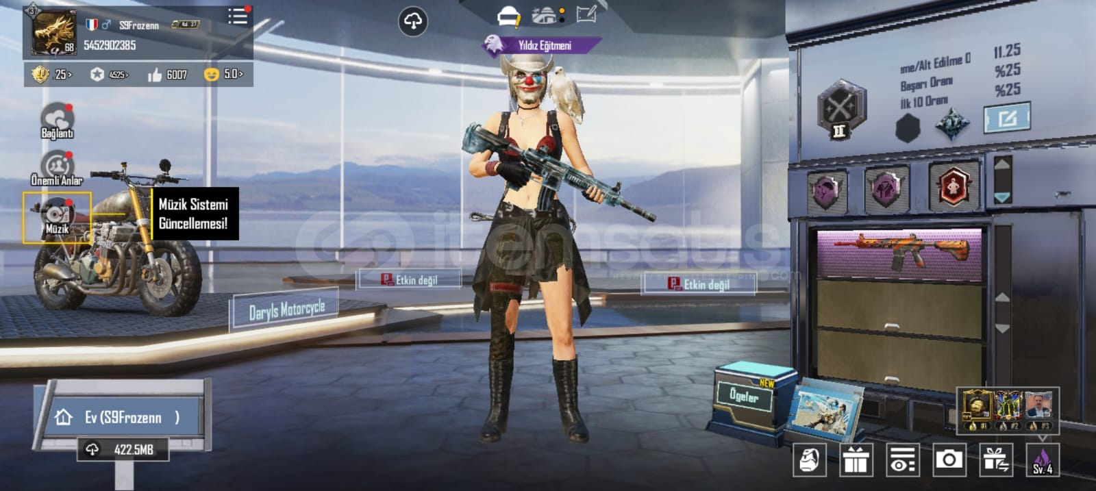 Hesap 68 seviyedir.Hesap 6 destansıdır.Hesapta Buz M4 vardır 2 seviyedir.Hesapta s7 den s11e kadar rp fullenmiştir.Yoldaş kuş vardır.Kanun kaçağı seti ve şapkası vardır.5 Adet destansı amblem vardır.Bu sezon 0-100 arası rpsi açılmıştır.RP seviyesi 28dir.Rp fullenince 500 uc gelicektir.Tek bağ twitterdır devredilecektir.Form geçmişi temizdir.Hesabın videosu https...