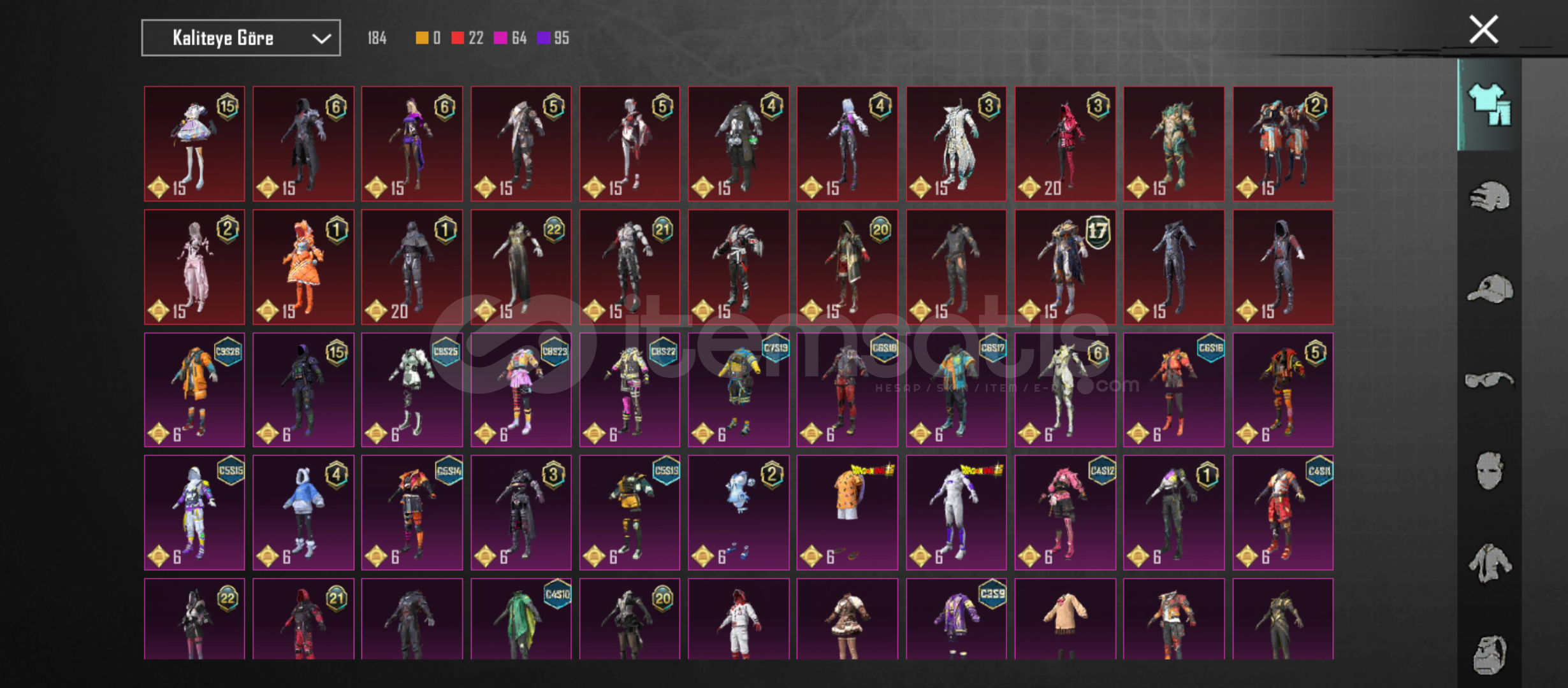 Buz m4 4 seviye. 43 deatansıMor awm 2 seviye denizlerin evrimi ump 3 seviye AKM 1 seviye M762 1 seviye. Royal pas açık Distopya seti. Dolar setiYarışcı seti. 2 tane ölüm duyurulu bomba