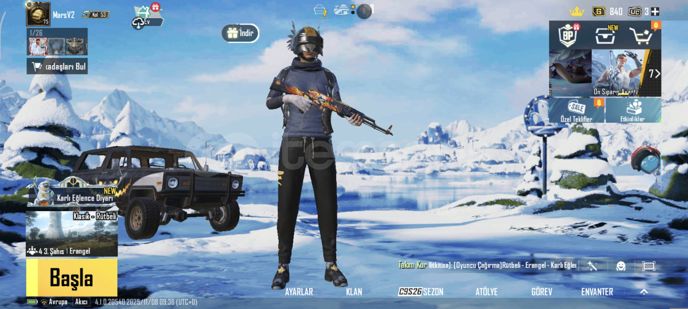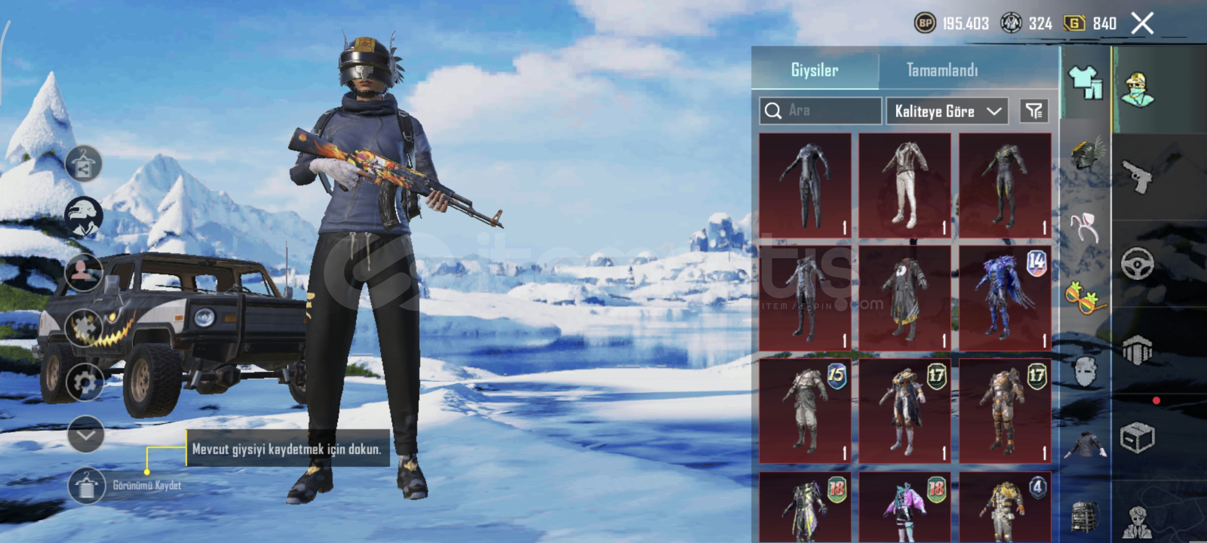 MASKELİ MEDYUM SETİİŞGALCİ SETİ VE MASKESİROCK YILDIZI SETİKARA KÖPEK BALIĞI DALGIÇ SETİAVCI PRENSES SETİVE DAHA FAZLASIEKİP ÜNİFORMASIMASKELİ MEDYUM KASKIŞİRİN MELEK SIRT ÇANTASI5 SEVYE BUZ DİYARI M416CEHENNEM ATEŞİ AKM ( 7 SEVYE )2 TANE MODİFİKASYON PARÇACIĞI58 DESTANSITEK BAĞ ÖDÜLLÜ EPOSTA
