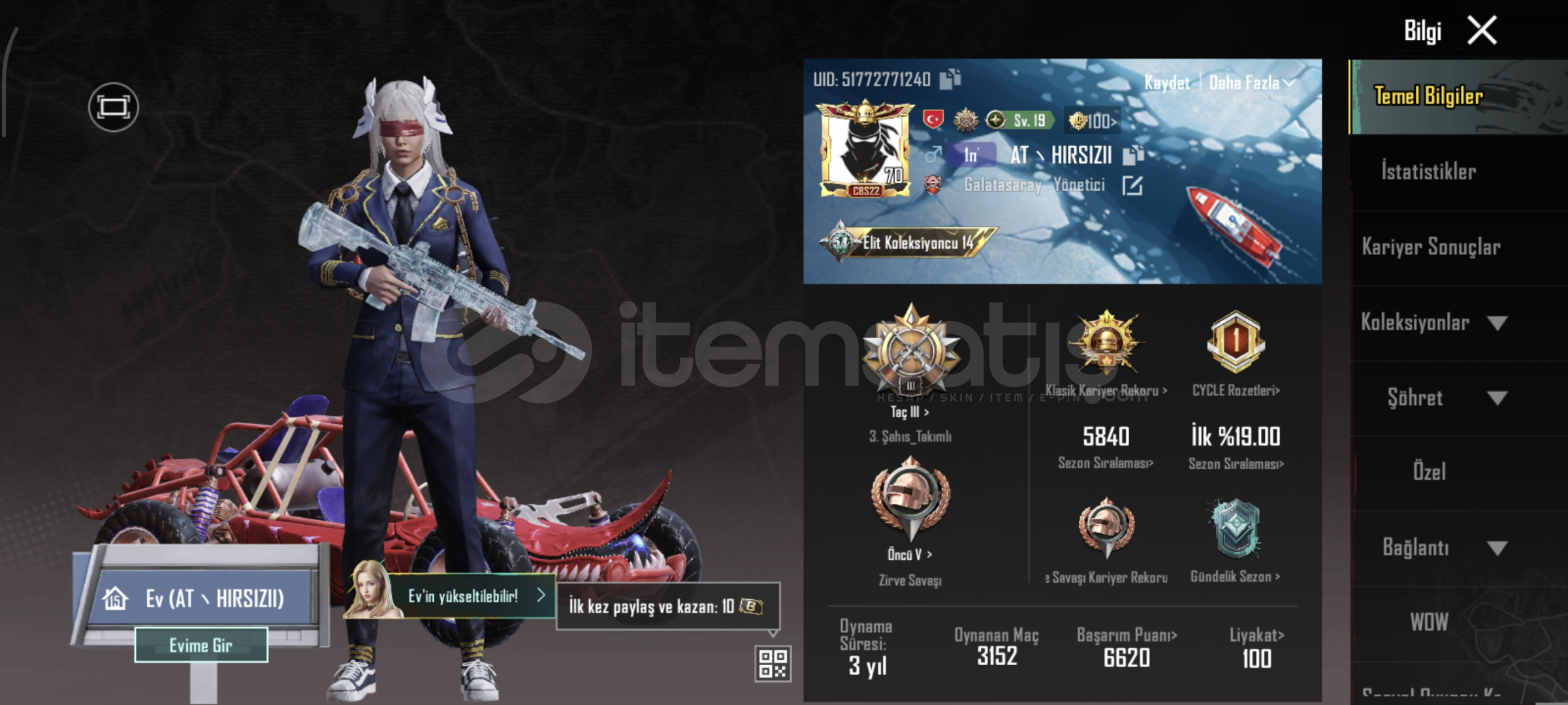 Hesabımı güncel olarak kullanmaktayım temiz bağlar e posta ve telefon yıllardır kullandığım emek hesabıdır alıcısını üzmez zaten fotoğraflarda belli 78 destansı 21 upgrade 1 x suit set mevcuttur azda olsa pazarlık payı vardır
