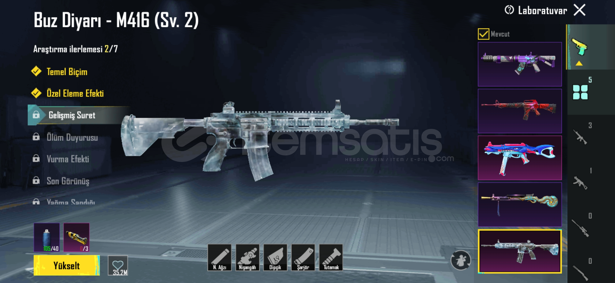 Buz M4 ölüm mesajlı ump vs yukseltilebilir silahlar mevcuttur pet/yoldaş vardır