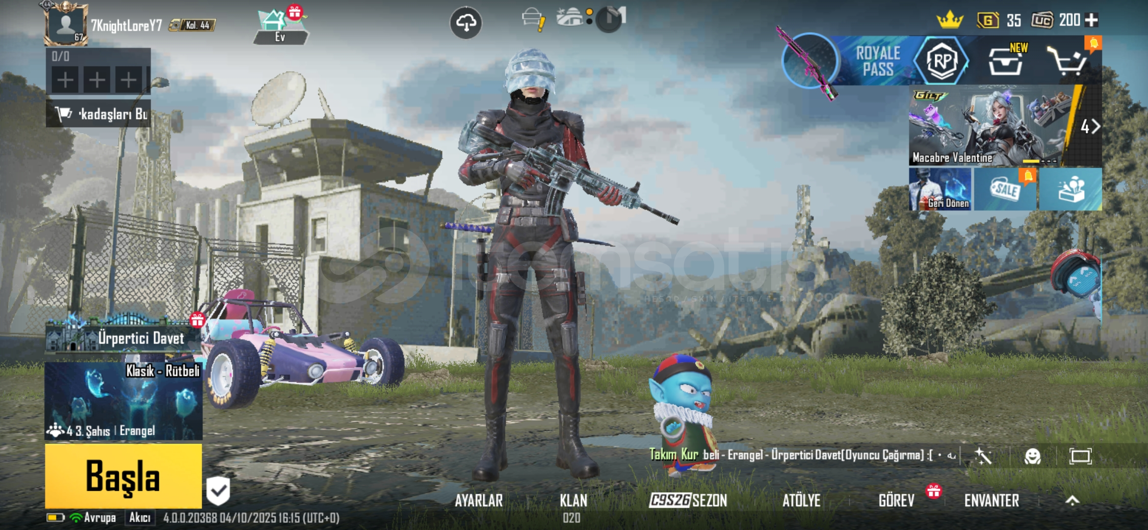 18 destansı bol RP açılmıştır hesapda 200 üç ve RP de açıktır id değiştirme kartı mevcuttur bol kask ve bol çanta desenide var pazarlık sünnettir pazarlığa açığım