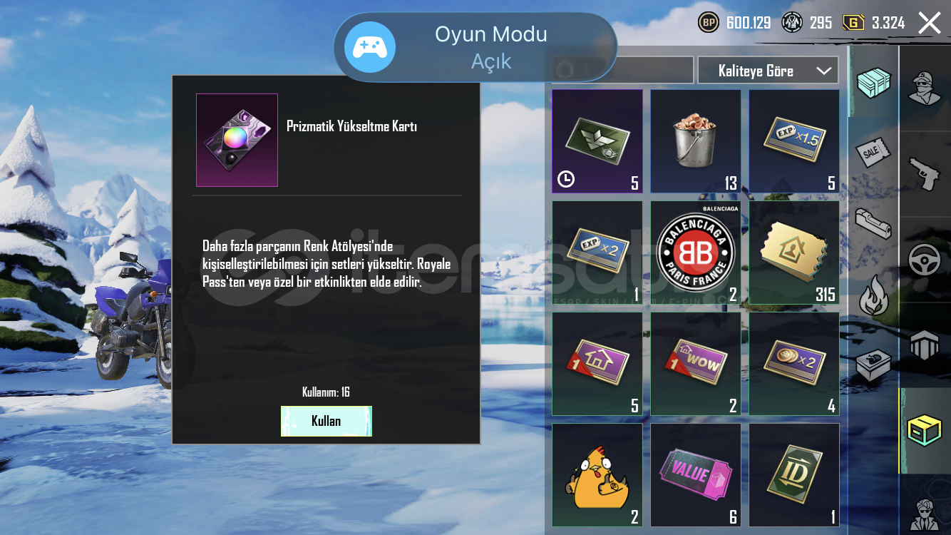 İd kartı vardır,iki tane yüksektilebilir silah,zamanında rp açılmıştır,bir çok silah deseni vardır,kombinlik kıyafetler,emojiler olsun,oyunu bıraktığım için satıyorum alıcısına şimdiden hayırlı olsun güle güle kullansın.