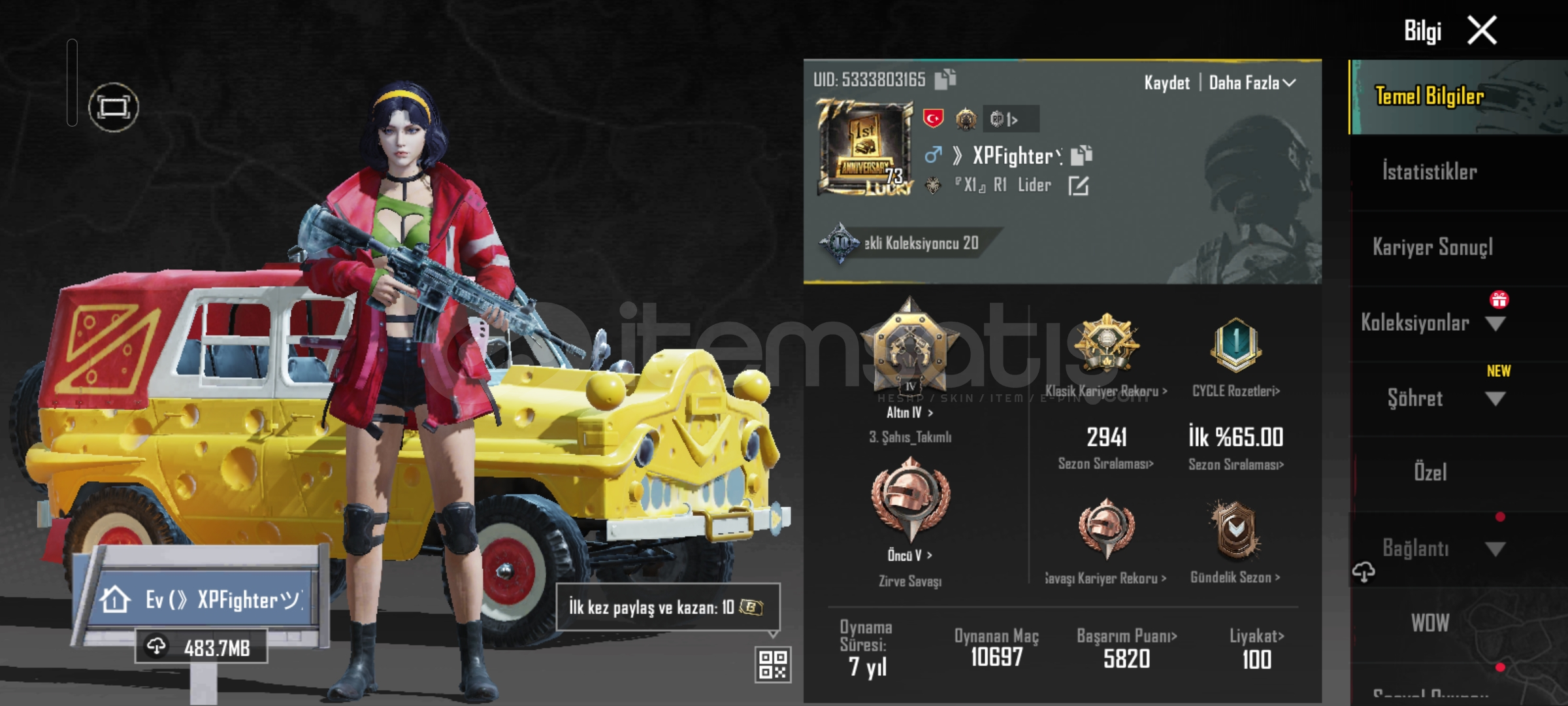 BUZ M4 LÜ 73 LEVEL EFSANE HESAP