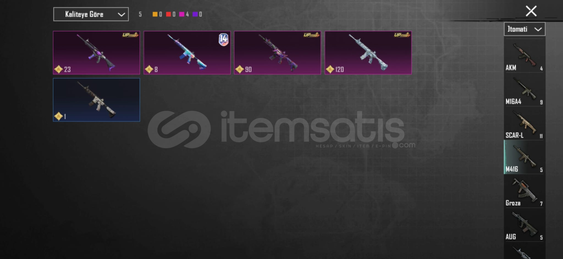 BUZ M4 - 6 SVYMASKARA M4 - 5 SVYSHINOBI KAMI M4 - 1 SVYARINDIRICI AMR - 1 SVYYÜKSEK SES SCAR-L - 1 SVYYILAN IŞILTISI AWM - 1 SVYSESSİZ RUH AMR - 1 SVYRUHBİÇEN UMP45 - 1 SVYGÖKSEL TILSIM QBZ - 1 SVYYARIN OPERASYON SCAR-L - 1 SVY8-BİTLİK PATLAMA UMP45 - 4 SYVTOPLAMDA 27 ADET YÜKSELTİLEBİLİR VAR DAHA SAYMADIĞIM BİR SÜRÜ SİLAH VARDETAYLAR İÇİN İD 5656969078İNDİRİM KONUŞULU...