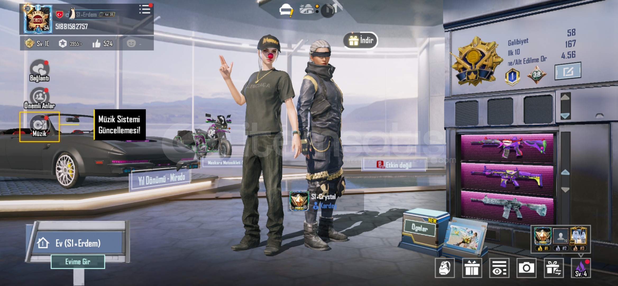 PAZARLIK VARDIRMutlak sıfır vector:5(ölüm mesajlı)buzm4:4(ölüm mesajlı)maskaram4:5(ölüm mesajlı)Yamalı tavşan mk47:(ölüm mesajlı)şirin kedi kar98:(ölüm mesajlı)yıldzlı yeşim ejderha dp28:(ölüm mesajlı)küçük midilli m7:(ölüm mesajlı)vahşet uzi:1 seviyekış devriyesi vss:1 seviyesteampunk thomsan:1 seviyeyüksek ses scar...