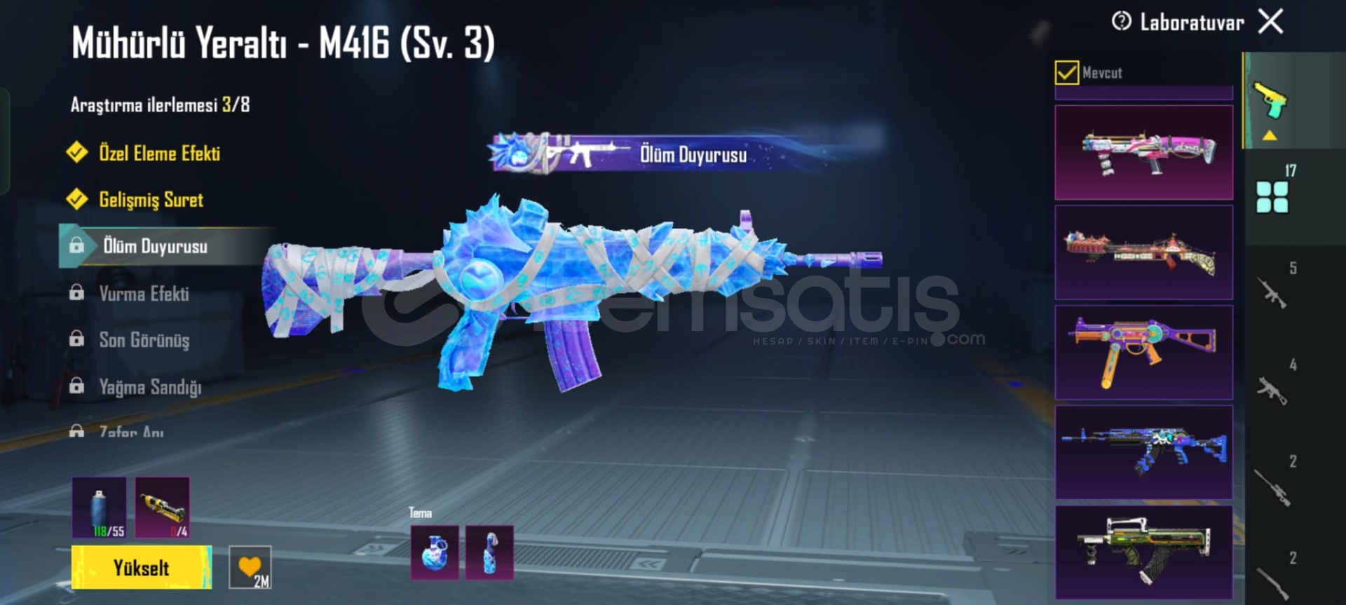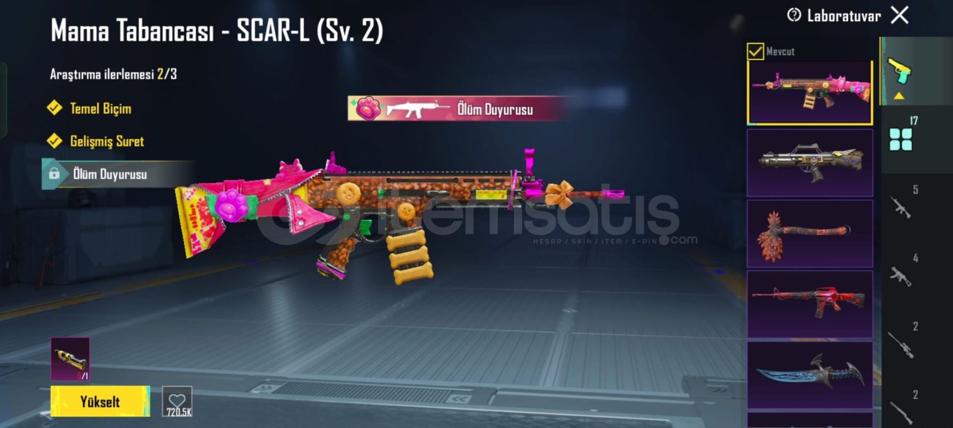 🚨 Hesap Detayları ve Öne Çıkanlar:Bu özel hesap, özellikle yükseltilebilir silahları ve zengin kozmetik koleksiyonu ile dikkat çekmektedir.• Yükseltilebilir Silahlar (Ölüm Duyurulu):• M416 - Mühürlü Yeraltı (Sv. 3): Ölüm Duyurusu açık. (Özel Eleme Efekti ve Gelişmiş Suret açık)• SCAR-L - Mama Tabancası (Sv. 2): Ölüm Duyurusu a&...