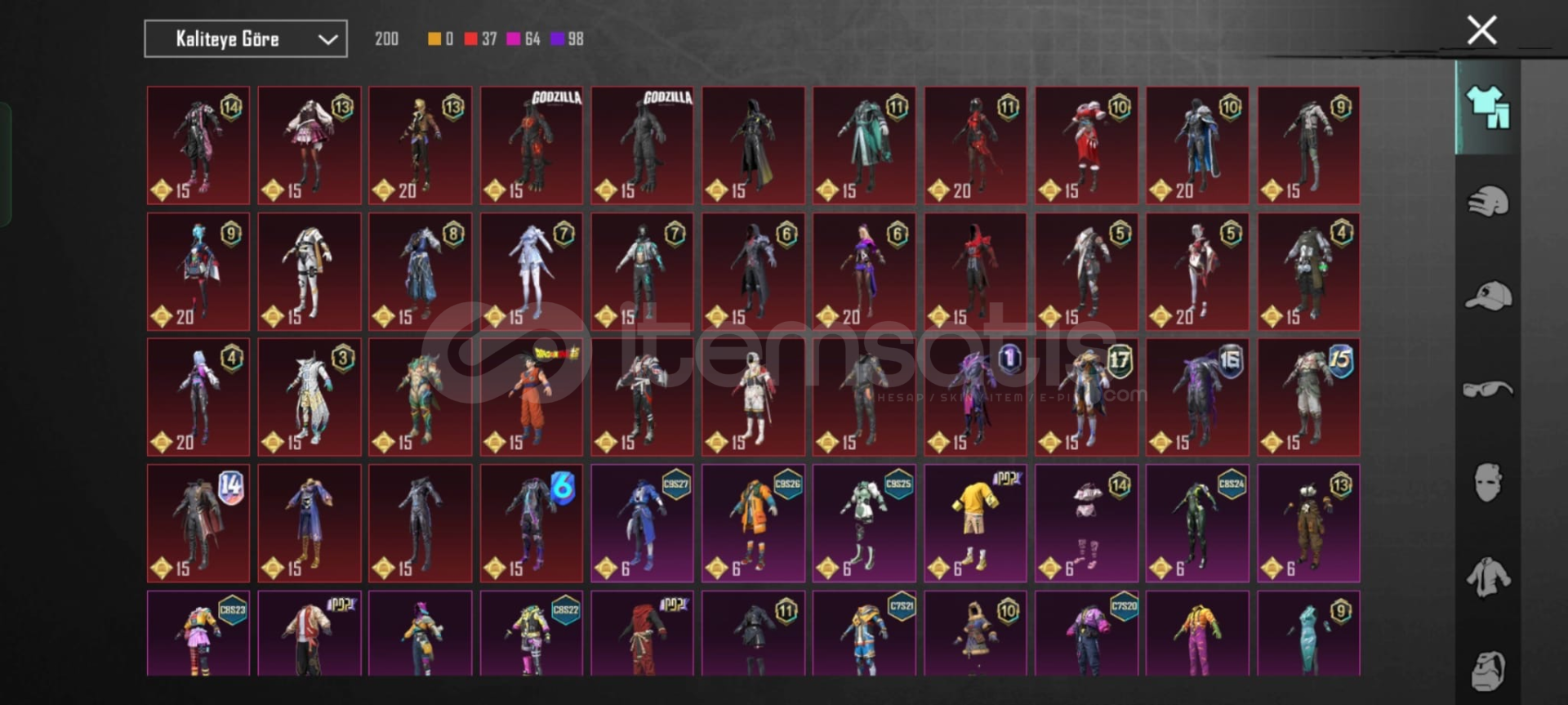 Giysi/Set Sayısı: Toplam 81 Destansı (Mor arka planlı) giysi/set bulunmaktadır.