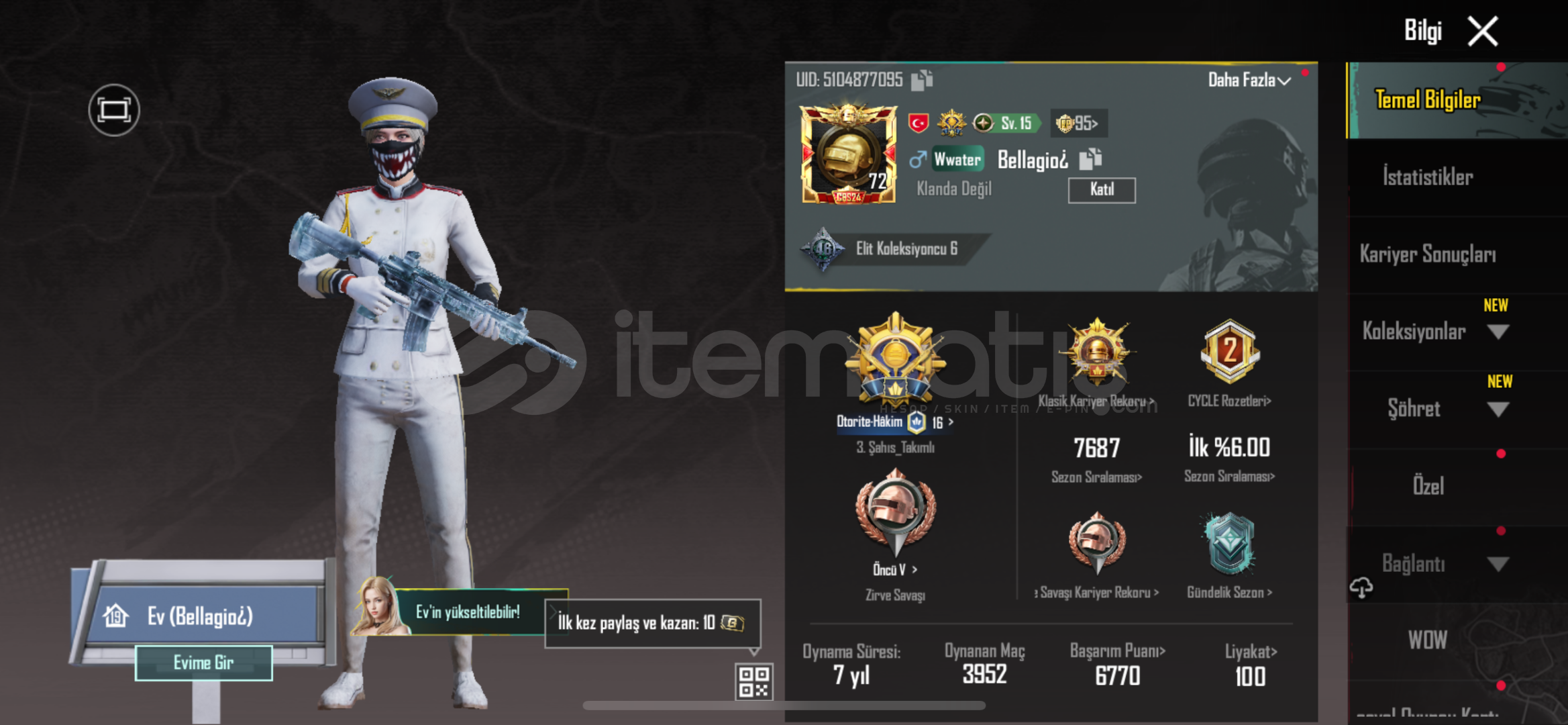 Hesap 72 seviyedir hesapta 11yükseltilebilir 33 destansı vardır hesabın bagları degişir ve temizdir şuanda mail ile telefon numarası bağlıdır alana şimdiden hayırlı olsun