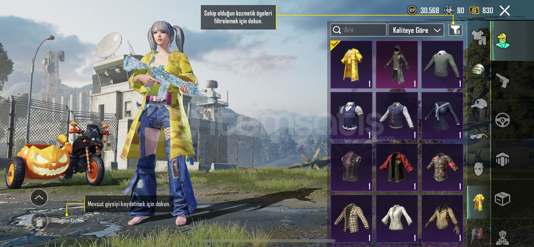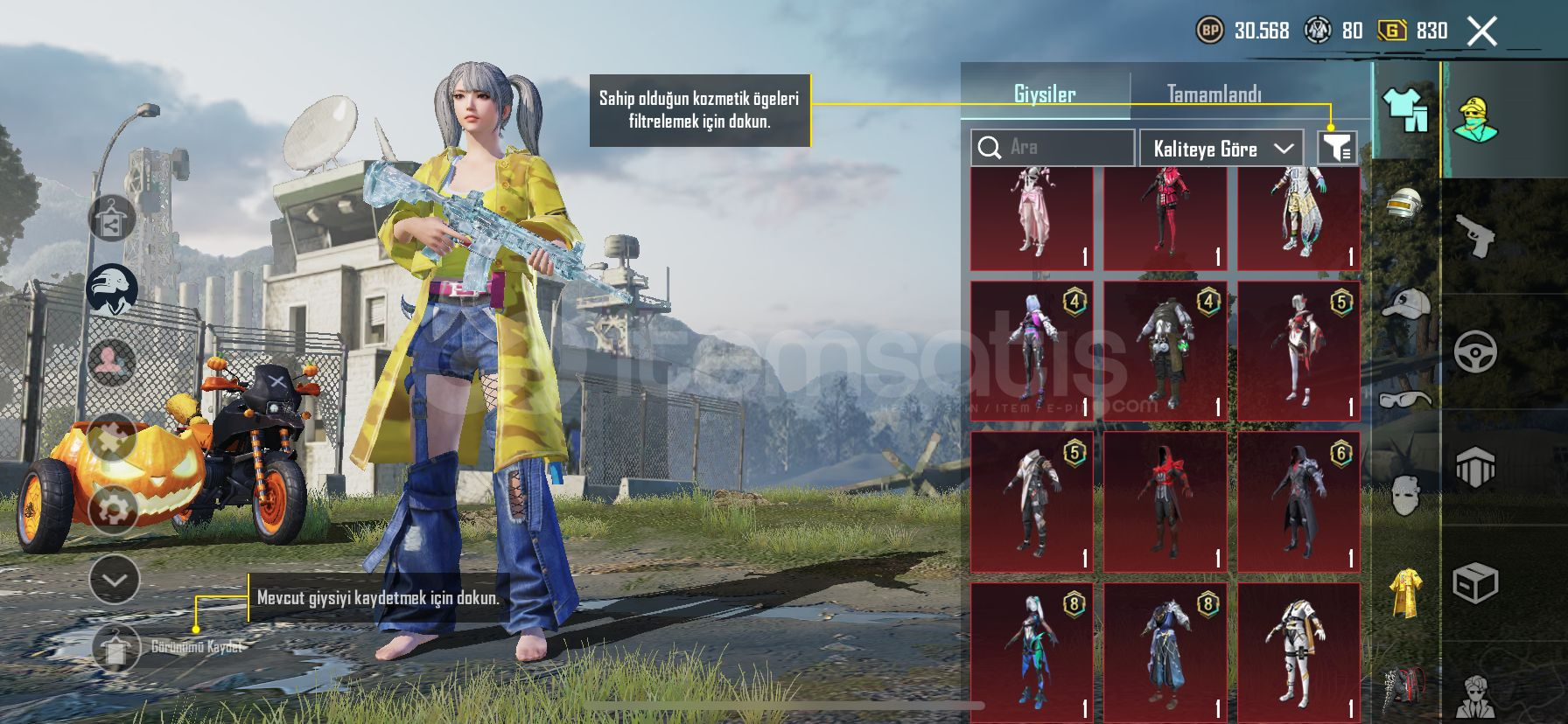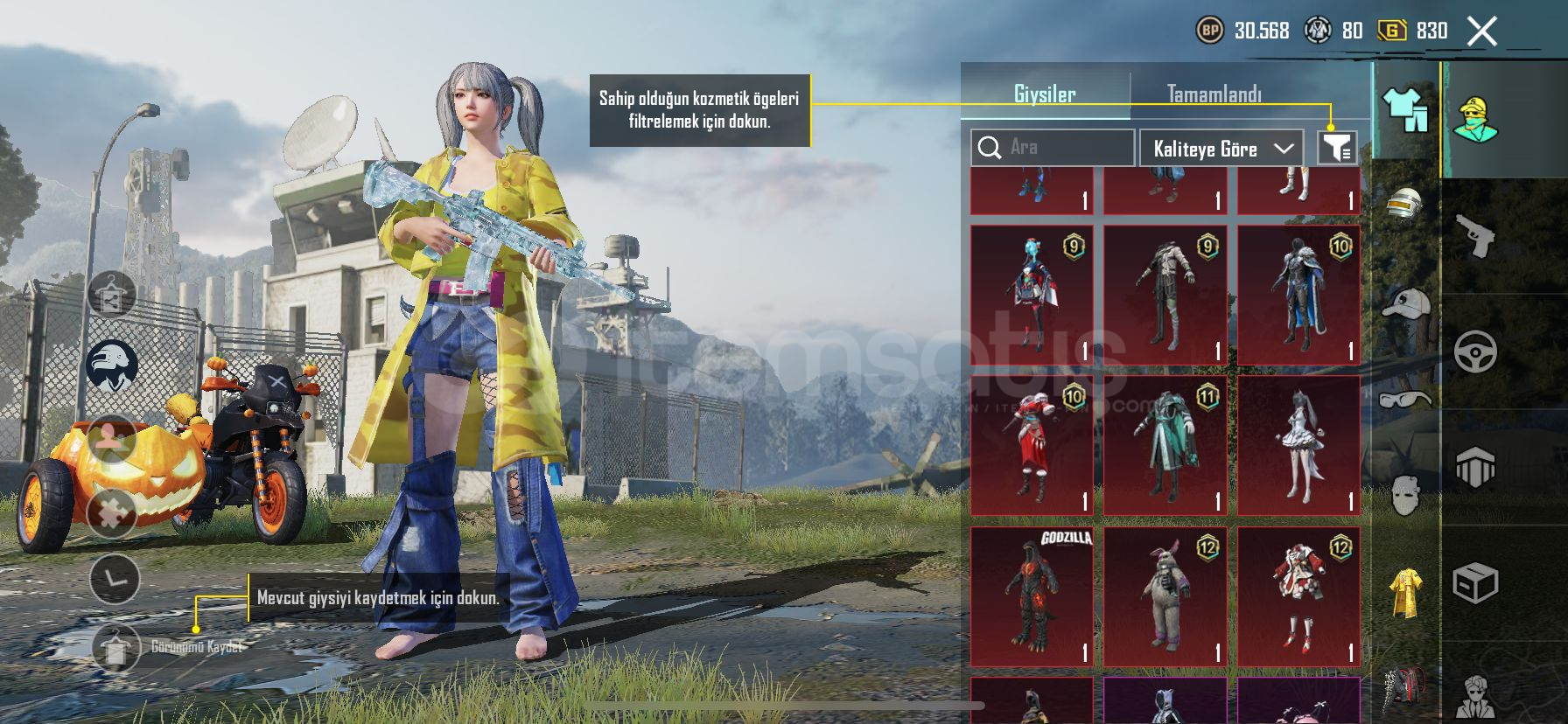 🎭 Özel Setler:🍍 Ananas Seti🎯 Kusursuz Tetikçi Seti👤 İşgalci Seti⚡ Metal Fırtına Seti🔋 Akülü Zırh Seti🤠 Kasabanın Şerifi Giysisi🎭 Asil Maskeli Seti👑 Buz Kraliçesi Seti🌸 Cennet Gonca Seti🔥 Alevli Godzilla Kostümü🏜️ Altın Kum Varisi Seti🪖 Toplamda 3 Adet Destansı Kask🔫 Yükseltilebilir Silahlar:&#...