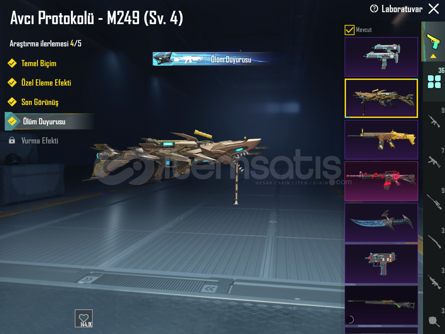 25 ARALIK ÖZEL FİYAT 21 ölüm duyurulu silah mevcut1-Avcı protokolü m249 4lvl2-dikenli Şafak m16 ö,d3-Atomik tetik s12k 4lvl4-gece gladyatörü bizon Ö,d5-şirin kedi kar98 Ö,d6-Zaria leylak Thompson Ö,d7-Peri cazibesi tava Ö,d8-lider panter dps Ö,d9-obur tavşan akm 4lvl10-denizlerin evrimi ump Ö,d11- yıl dönümü ump Ö,d12-yükselen ejderha MG3 4lvl13-yaldızlı biçici...