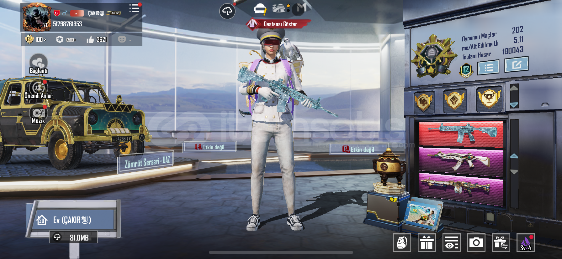 !Buz M416 MAX(3x açık)!Gökyüzü Avcısı Mg(3x açık)16 Yükseltilebilir 6 Ölüm Duyurusu!!!70 DESTANSI!!!Yılan Işıltısı Seti(Nihai)Komutan Seti Full Ananas Seti FullMükemmel Hesap 2 bağda değişiyor Bu fiyata Buz max birde nihai o kadar destansı çanta kask vs bulamazsınız kaçırmayın