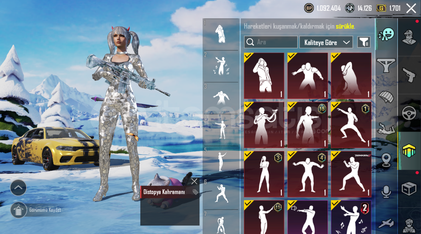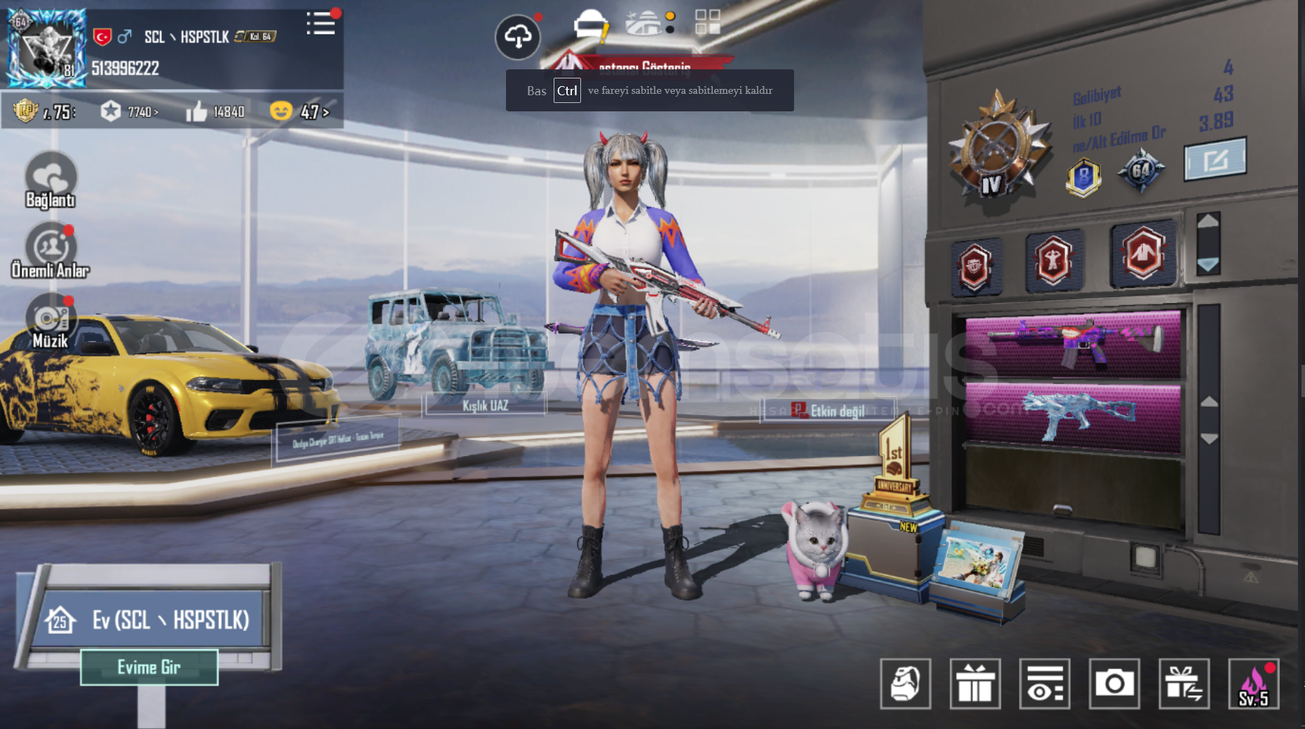 Hesap Videosu: https://www.youtube.com/watch?v=EiQyitnu1Qc&t=1siÇİNDEKİLER:114 Destansı64 Koleksiyon Seviyesi81 Hesap Seviyesi996 Giysi Kaplaması279 Silah Kaplaması32 Yükseltilebilir Silah37 Araç Kaplaması169 Dans ÇeşidiKedicik Yoldaşı457 UCRoyalPas Açık.BİLGİ:Tüm Silahlar Ölüm Duyurusuna kadar açıktır. ! ! ! !Hesabın ilk sahibiyim.Telefon ve Epostaya bağlıd...