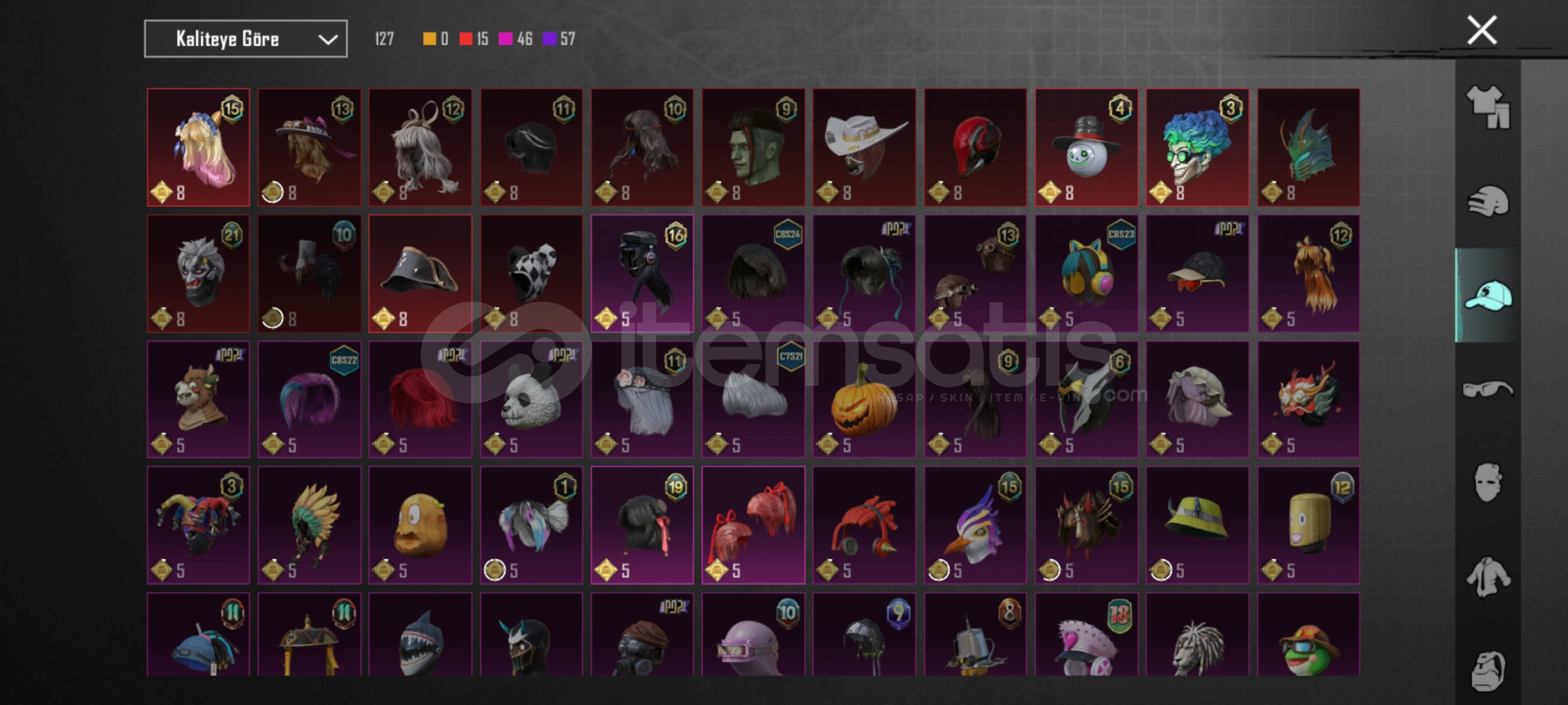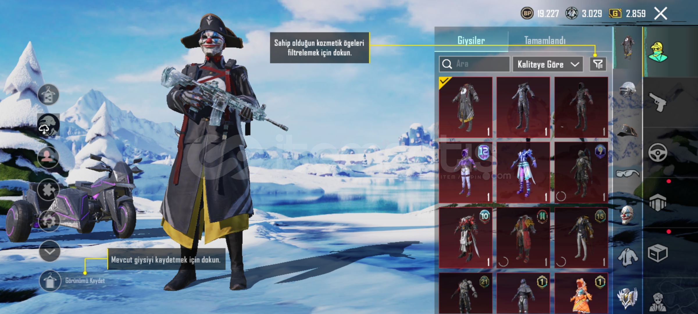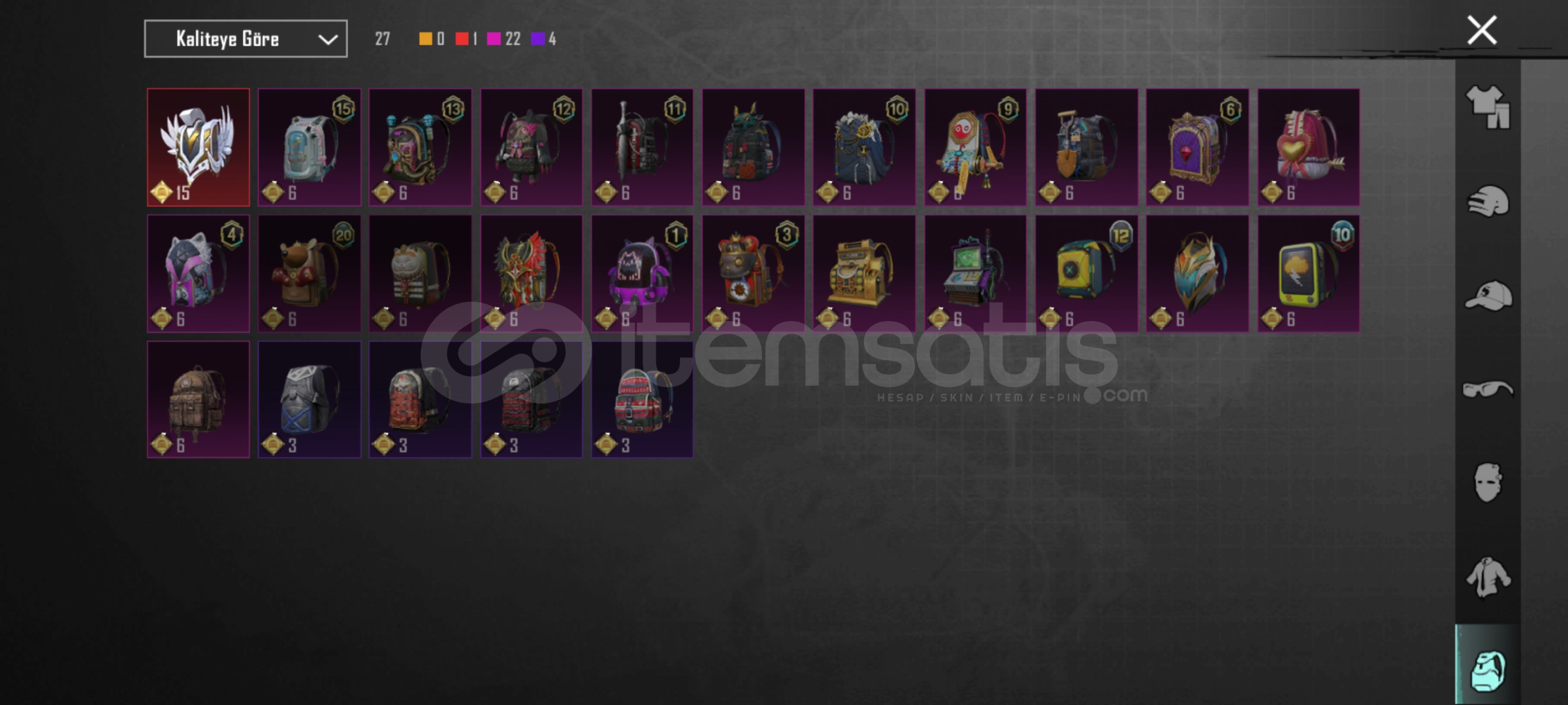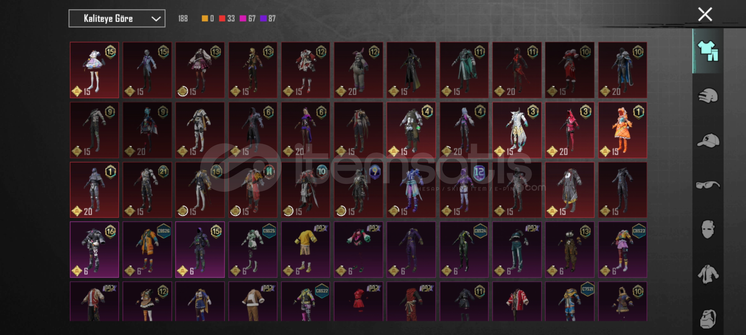 Merhabalar buz sv 4 em762 sv 4 mg sv 3 em24 sv 1 pala sv 3 arbalet SV 2 DBS sv 2 tamsın sv 2 uzi sv 1 hançer sv 1 em16 sv 2 mk47 sv 2 ns2000 sv1 mp7 sv1 toplam 14 silah 58 destansı 3sezon Fatih+ 360 uc 3adet maytikfors seti detayları için yazabilirsiniz