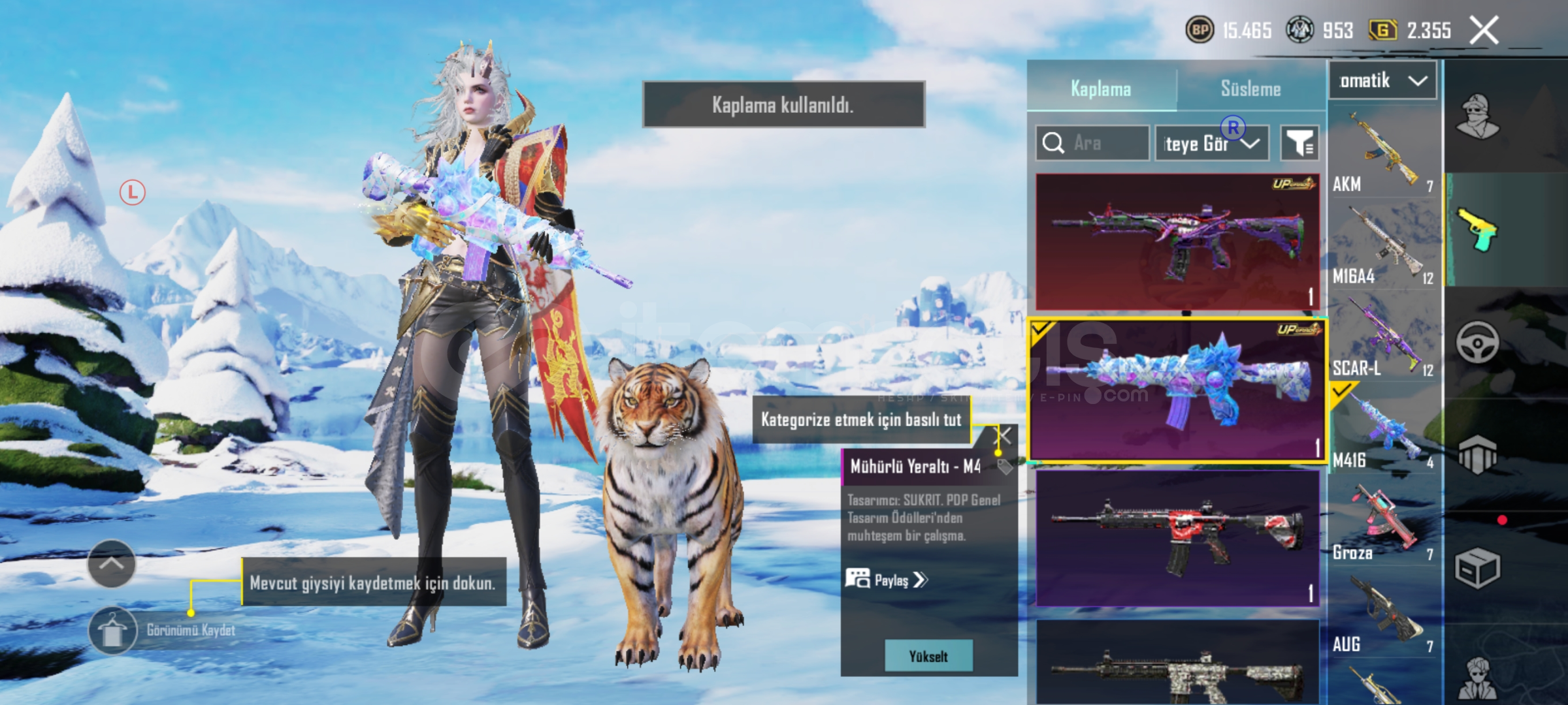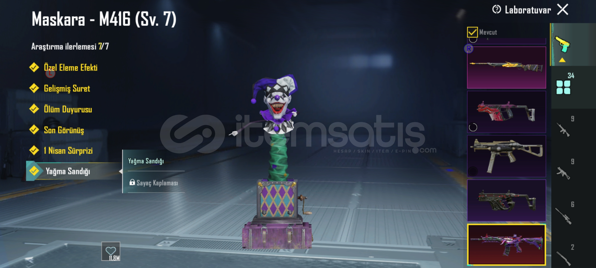- 28 Adet yükseltilebilir silah Maskara M4 7Sv , Soytarı M249 6 SV, kahramanlığın ağıdı AWM 4 , Firavun M24 3 SV , Hiclik tetiği M24 3 SV , Kan paraziti DP 3 SV , AŞK M762 3 SV , Yüksek SES scar 2 Sv + Yıl dönümü ump ve daha niceleri
