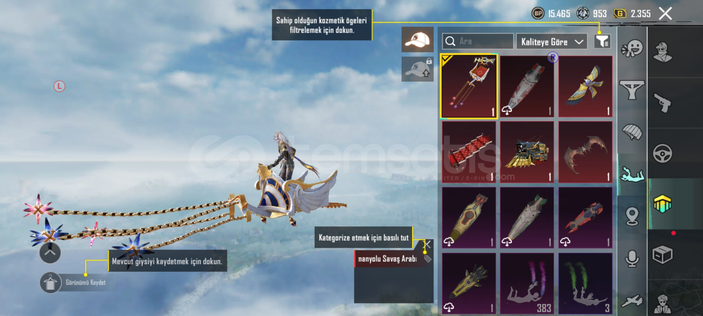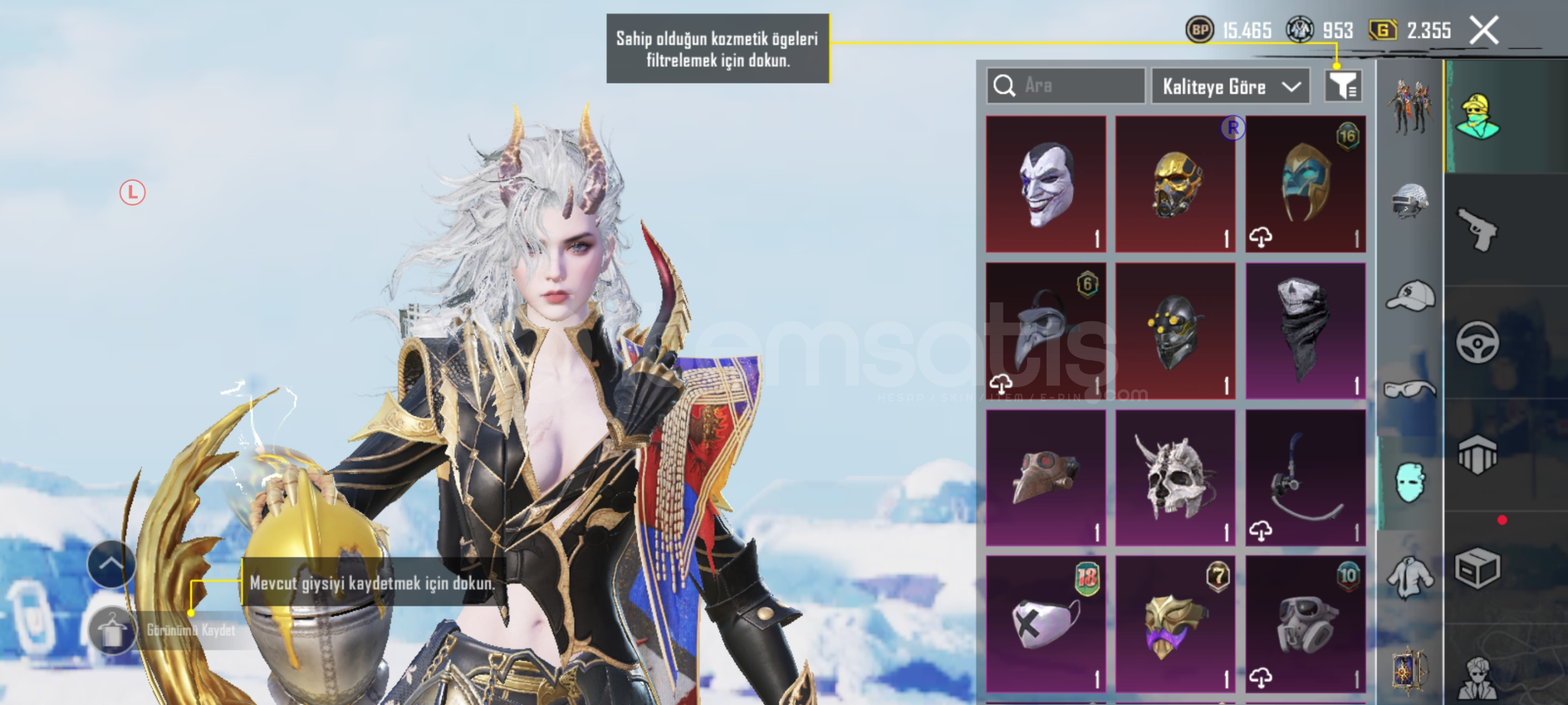 7 Adet nihai set + 3 başlık- 1 X suit 3 Sv-Kutup mumyası-100 Adet destansı 20 Emojili- 28 Adet yükseltilebilir silah Maskara M4 7Sv , Soytarı M249 6 SV, kahramanlığın ağıdı AWM 4 , Firavun M24 3 SV , Hiclik tetiği M24 3 SV , Kan paraziti DP 3 SV , AŞK M762 3 SV , Yüksek SES scar 2 Sv + Yıl dönümü ump ve daha niceleri-Lotus McLeran araç-S4 Yüz + Saç mevcut + Erkek S4 YÜZ-MASKARA ...