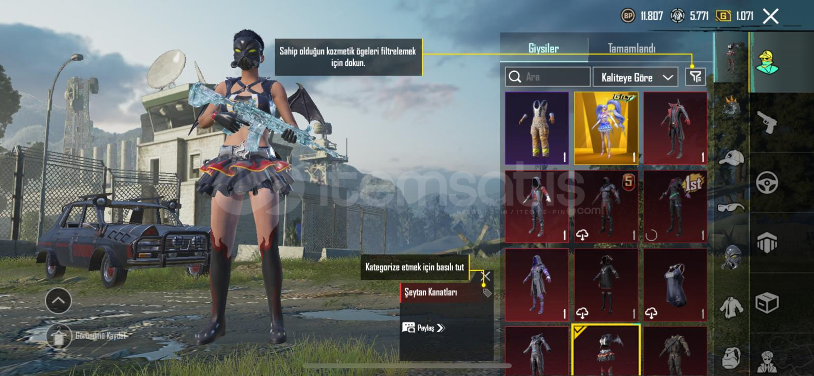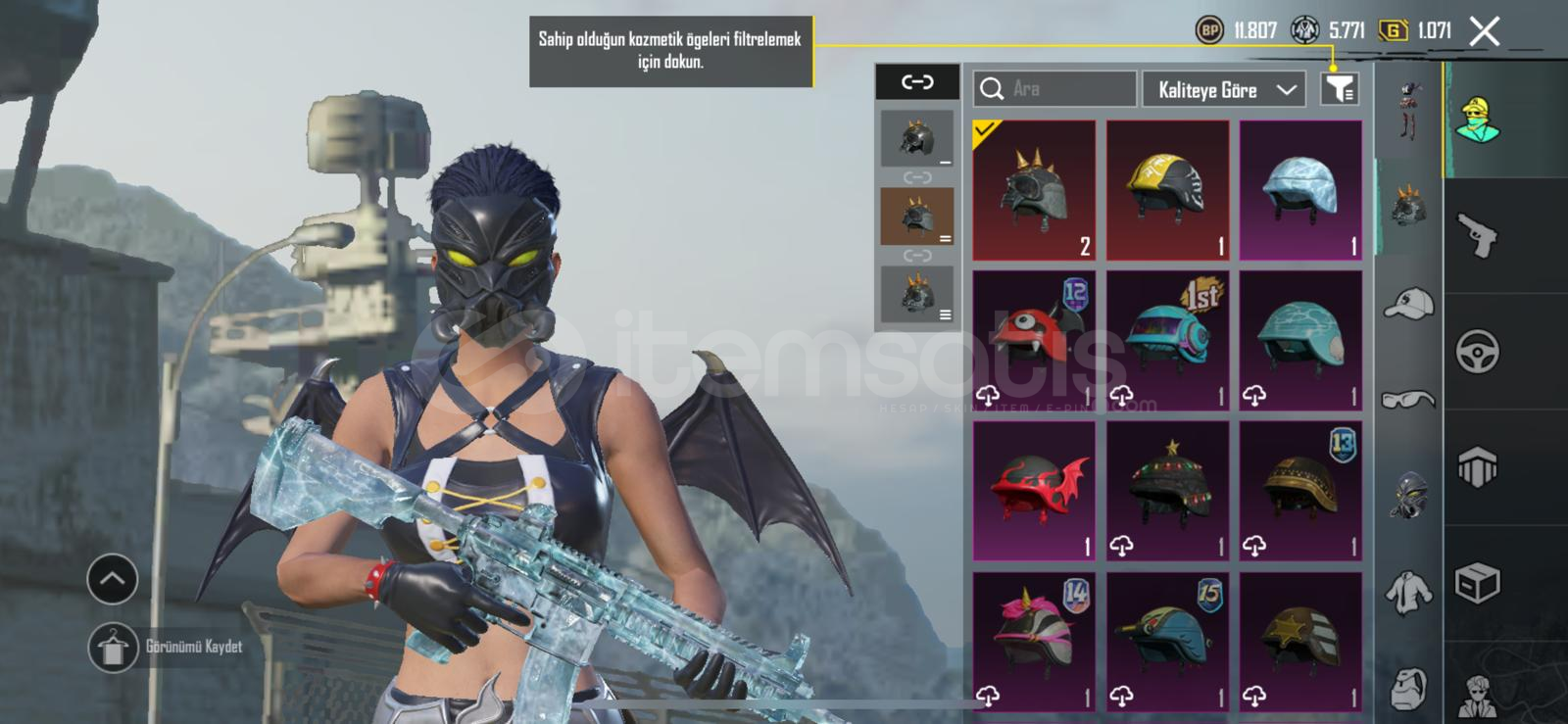 68 koleksiyon137 destansı 35 geliştirilebilir silah 12 ölüm mesajlışeytan seti,vampir seti,itfaiyeci seti,maskara seti,sirk dansçısı seti,pizzacı seti,gizemli yeşim seti,1.yıl dönümü seti,koyu altın üst alt full kombinDikenli kask 2 tane var,balkabağı kaskıbuz 6 lvlmaskara 4 lvlyeni gelen aug 5 lvlbuz ump 5 lvldbs 5 lvls12 5 lvlcoupta yeşil dodge vartimsah buggy varher bakımdan dolu he...